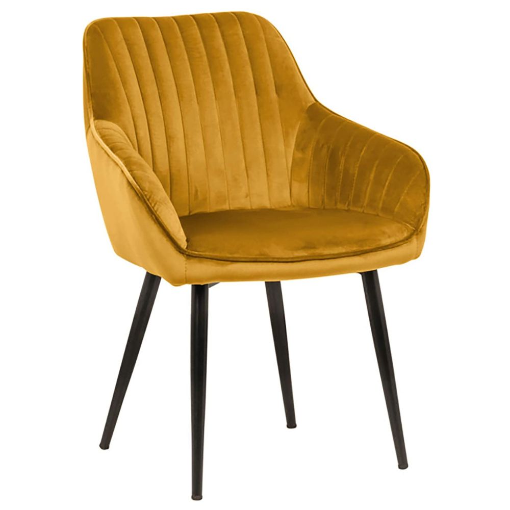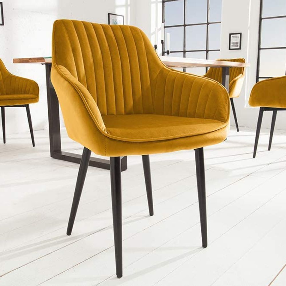 Eleganter Stuhl MILAN Samt senfgelb Ziersteppung Armlehnen