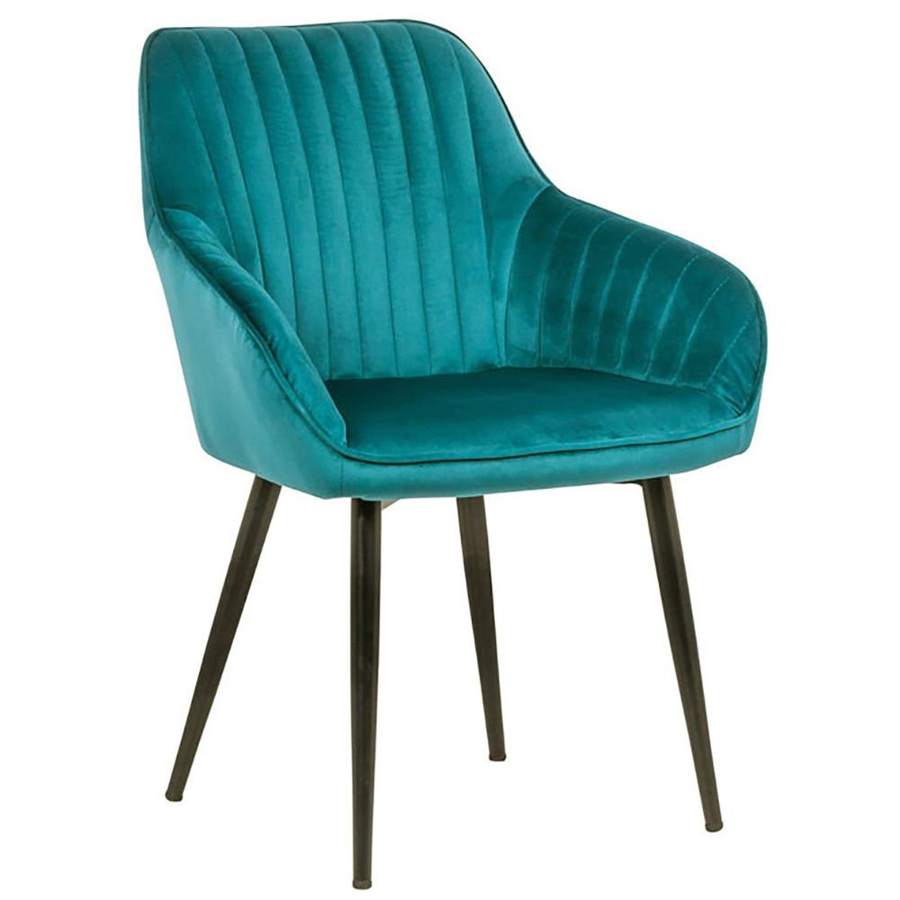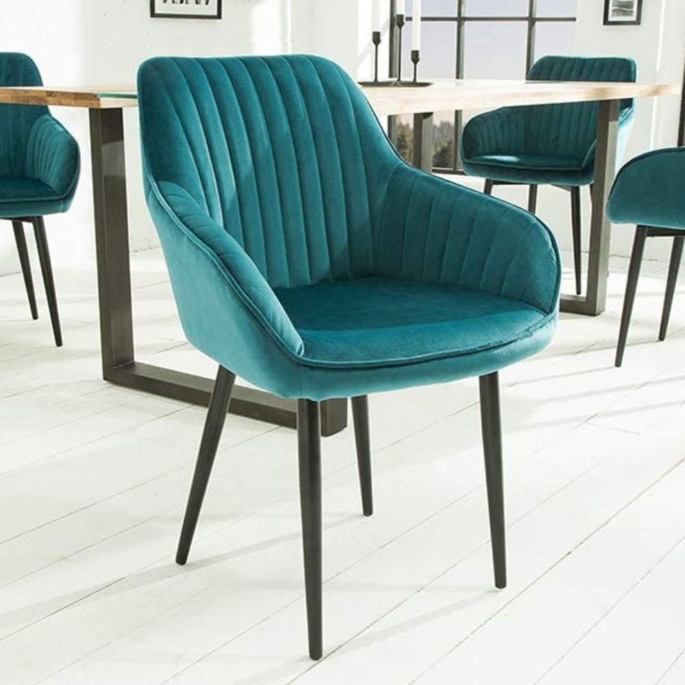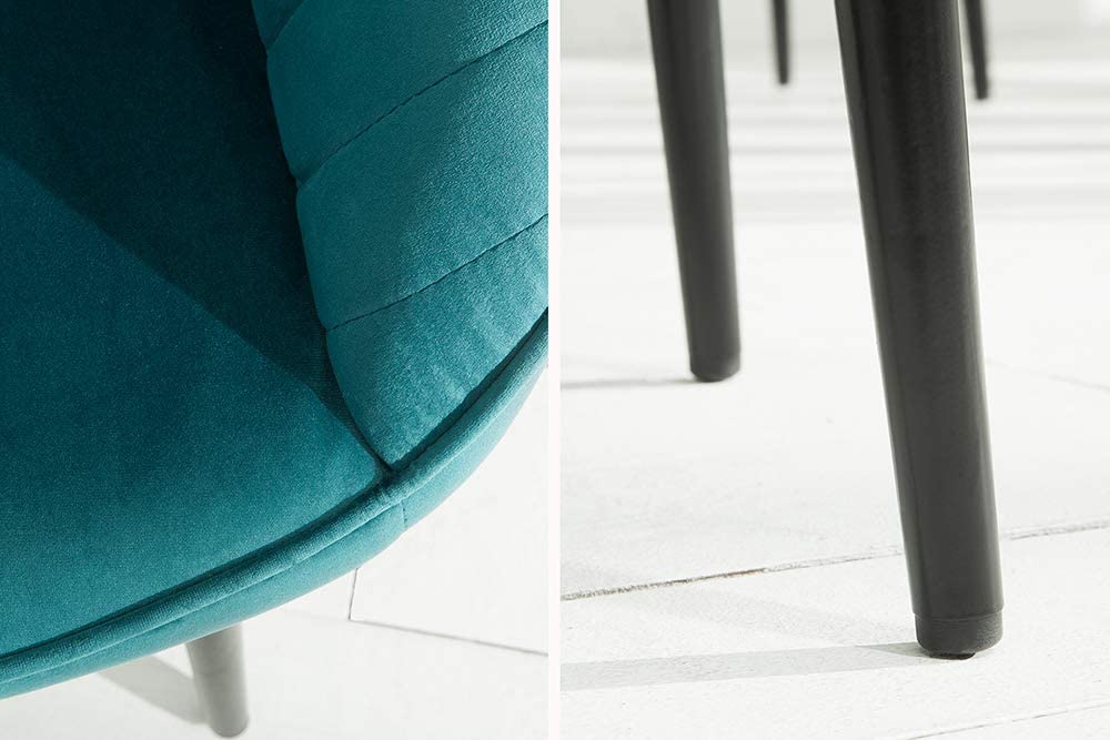Eleganter Stuhl MILAN Samt türkis Ziersteppung Armlehnen