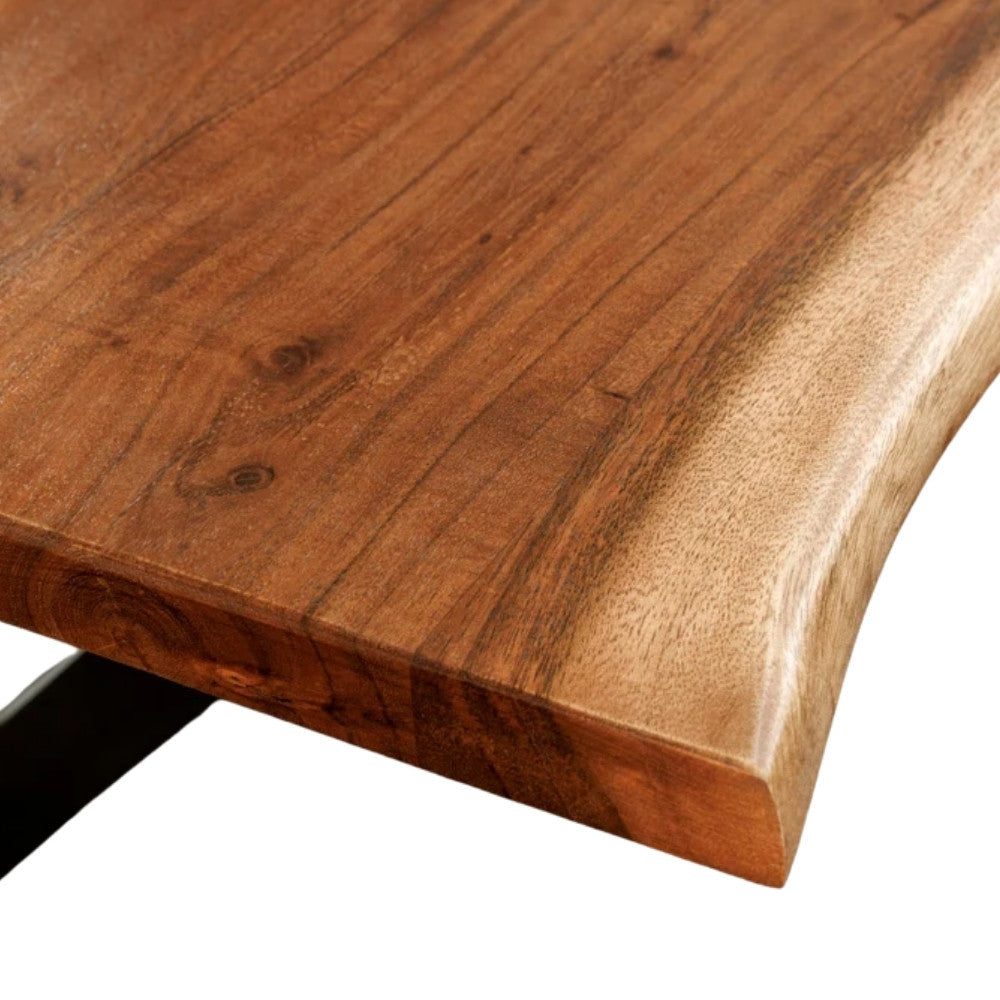 Akazienholz zählt zu den widerstandsfähigsten Hölzern weltweit und überzeugt durch eine besonders robuste Struktur. Die Baumkante unterstreicht den natürlichen Charakter – mit individuellen Linien, Astlöchern und spannenden Farbverläufen. Genau diese kleinen Unterschiede machen den Reiz aus: Jeder Tisch ist ein echtes Einzelstück.