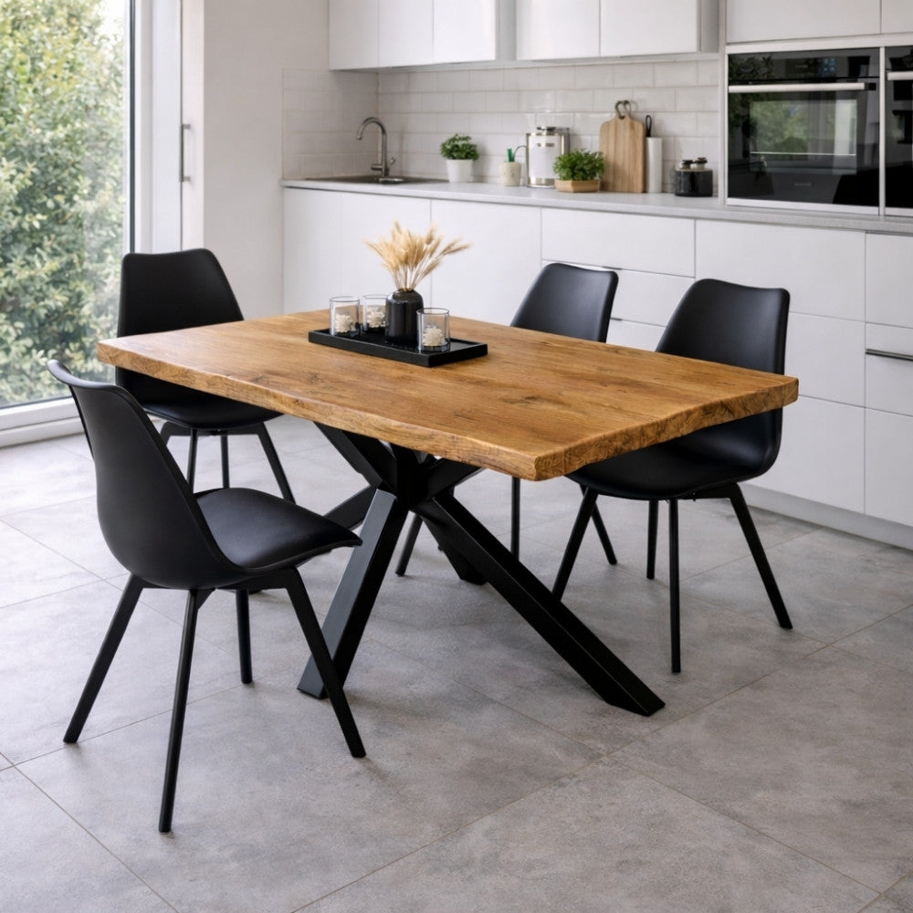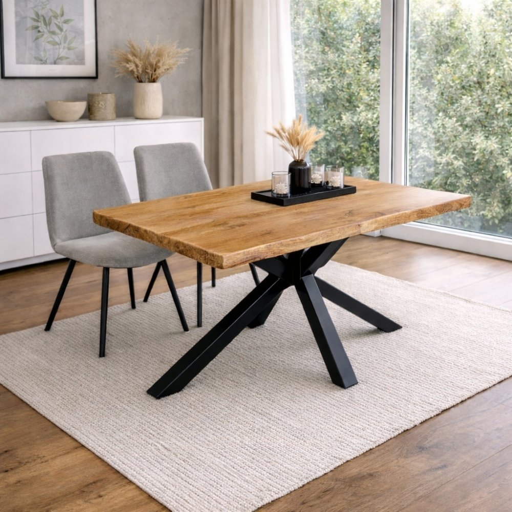 Mit 140 x 80 cm (Länge x Breite) ist dieser Esstisch ideal für kleinere Essbereiche, offene Wohnküchen oder moderne Apartments – ohne auf echtes Massivholz-Feeling zu verzichten. Ob für Frühstück, Dinner oder Homeoffice: Dieser Tisch ist ein stilvoller Allrounder mit echter Natur-Ausstrahlung.