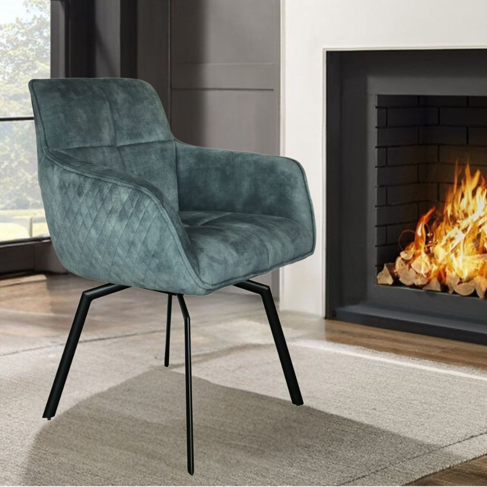 Exquisiter Drehstuhl 360° + Return-Funktion SPLENDID petrol Samt