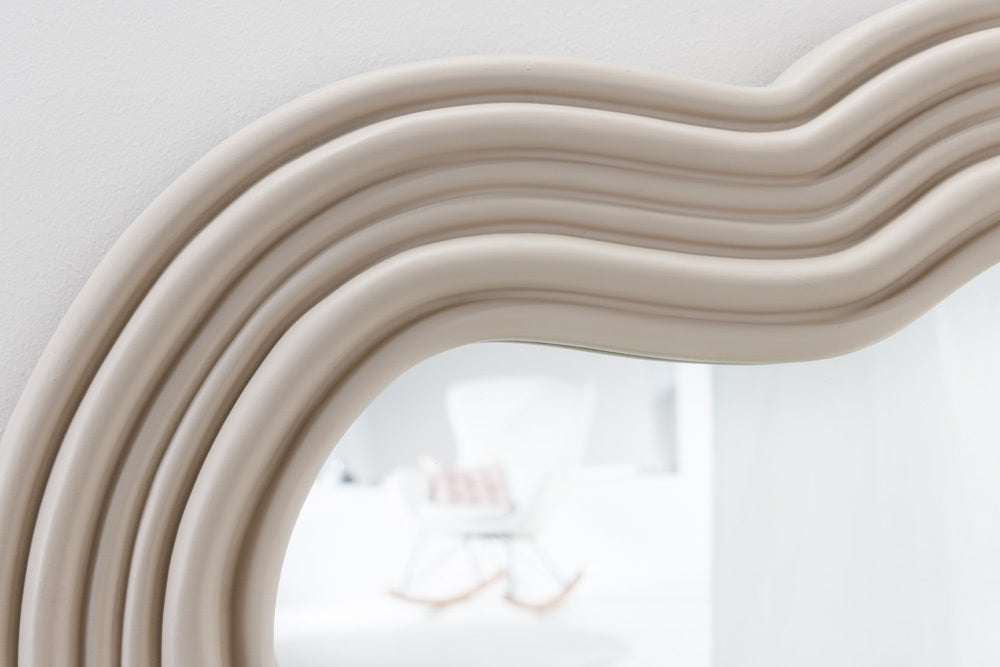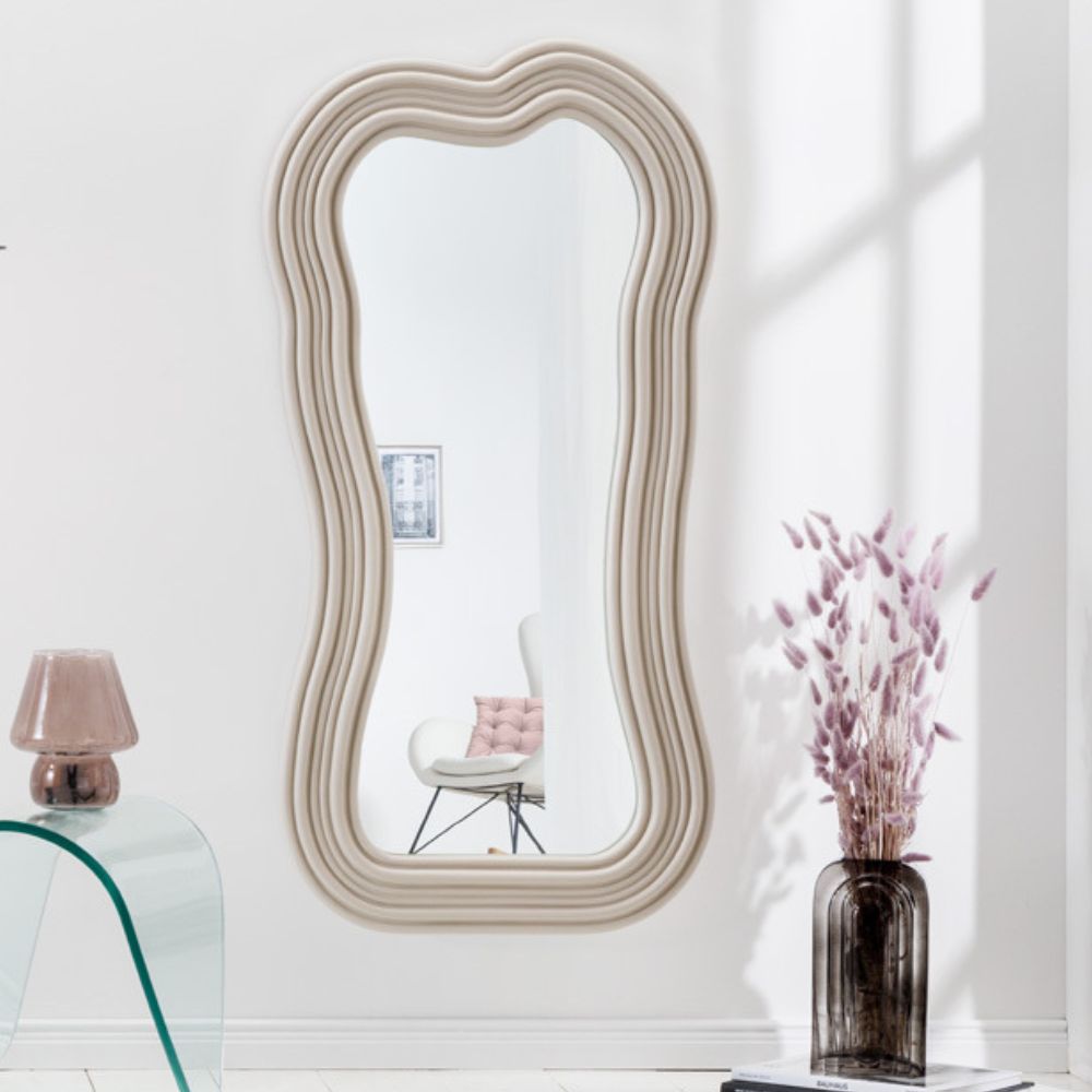 Der Wellen-Spiegel bringt den abstrakten Trend-Look in Dein Zuhause! Vom Landhausstil bis hin zum minimalistischen Ambiente: Der dekorative Design-Spiegel ist kompatibel mit den unterschiedlichsten Wohnstilen und Möbelstücken. Unser Interior-Tipp: Kombiniere den Ganzkörperspiegel mit weiteren Deko-Accessoires in hellen Erdtönen und einem passenden Teppich – so entsteht ein stimmiges Wohnkonzept!
