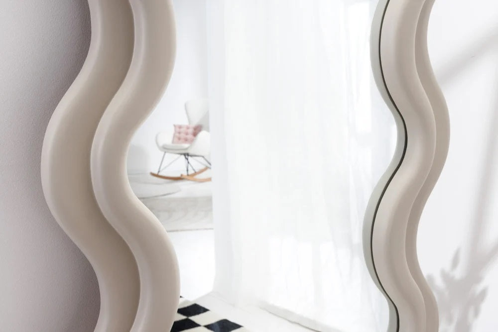 Der Wellen-Spiegel bringt den abstrakten Trend-Look in Dein Zuhause! Vom Landhausstil bis hin zum minimalistischen Ambiente: Der dekorative Design-Spiegel ist kompatibel mit den unterschiedlichsten Wohnstilen und Möbelstücken. Unser Interior-Tipp: Kombiniere den Ganzkörperspiegel mit weiteren Deko-Accessoires in hellen Erdtönen und einem passenden Teppich – so entsteht ein stimmiges Wohnkonzept!