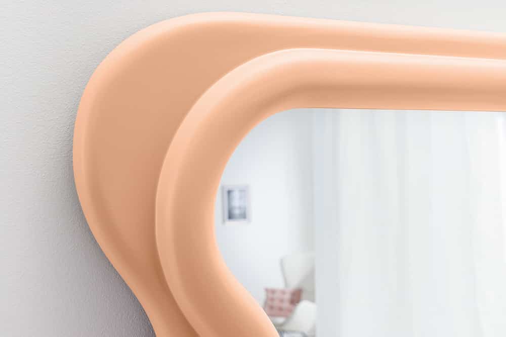 Mit unserem Wandspiegel FORMOSA zieht ein echtes Highlight bei Dir Zuhause ein! Dieser Spiegel besticht mit einem Rahmen im asymmetrischen Design in hellem Pastell-Apricot. Der Pastell-Spiegel ist ein perfektes Wohnaccessoire, um jedem Deiner Räum eine zusätzliche Tiefe und Helligkeit zu verleihen. Das gestufte Design des Rahmens ist ein verspieltes Detail und die Pastell-Farbe sorgt für ein freundliches Ambiente – egal ob im Flur oder im Schlafzimmer!