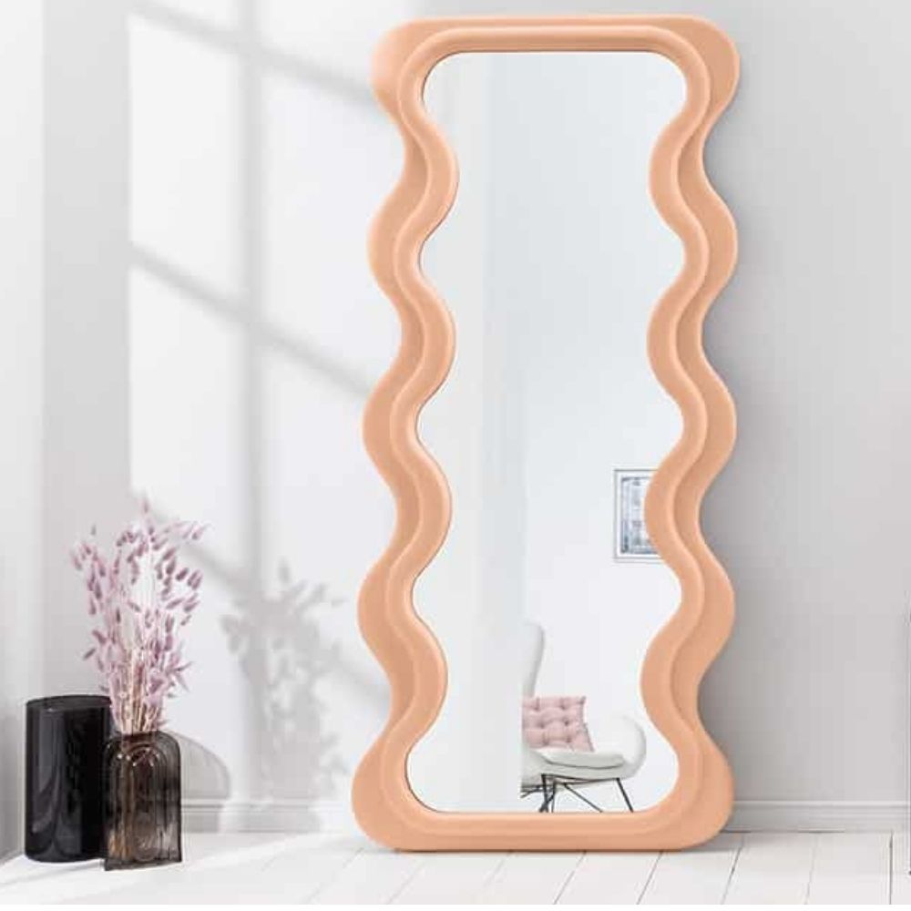 Der Wellen-Spiegel bringt den abstrakten Trend-Look in Dein Zuhause! Vom Landhausstil bis hin zum minimalistischen Ambiente: Der dekorative Design-Spiegel ist kompatibel mit vielen unterschiedlichen Wohnstilen und Möbelstücken. Unser Interior-Tipp: Kombiniere den Ganzkörperspiegel mit weiteren Deko-Accessoires in hellen Erdtönen und einem passenden Teppich – so entsteht ein stimmiges Wohnkonzept!