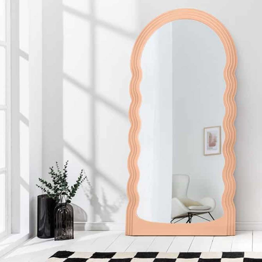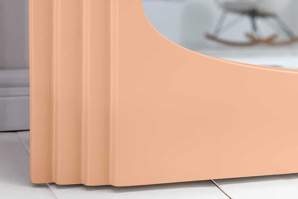 Mit unserem Rundbogen-Wandspiegel FORMOSA zieht ein echtes Highlight bei Dir Zuhause ein! Dieser Spiegel besticht nicht nur mit einem Rahmen im ganz besonderen Design sondern auch mit der tollen Pastellfarbe in Apricot. Dieser Spiegel ist ein perfektes Wohnaccessoire, um jedem Raum eine zusätzliche Tiefe und Helligkeit zu verleihen. Das besondere Design des Rahmens ist ein verspieltes Detail und die Pastell-Farbe sorgt für ein freundliches und warmes Ambiente – egal ob im Flur, Schlaf- oder Gästezimmer!