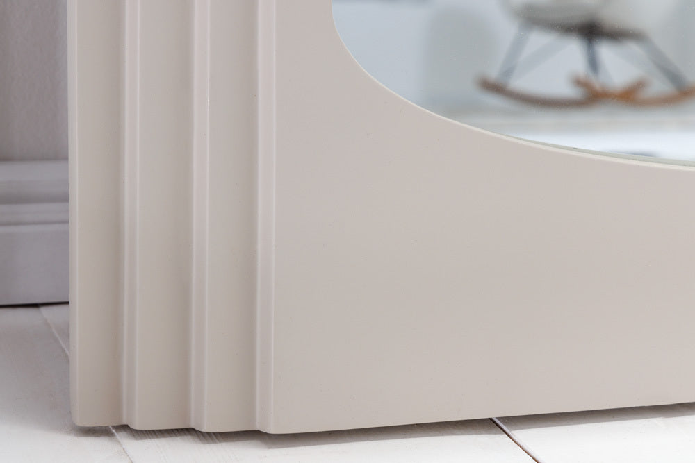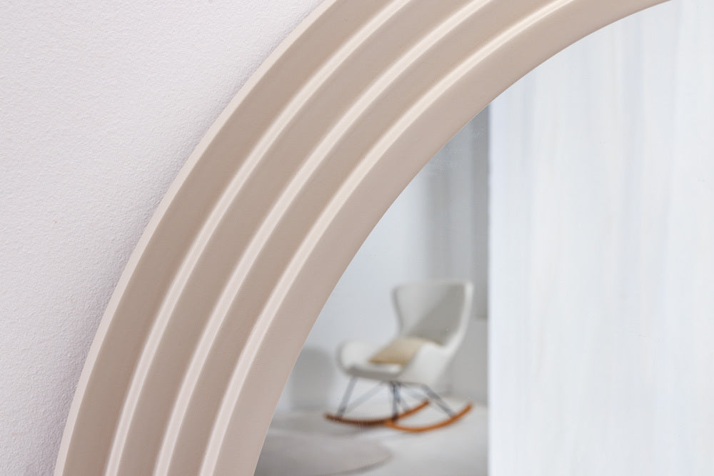 Mit dem Rundbogen-Wandspiegel FORMOSA zieht ein echter Hingucker bei Dir ein! Der Spiegel besticht mit einem Rahmen im ganz besonderen Design in hellem Pastell-Greige. Dieser Spiegel ist ein perfektes Wohnaccessoire, um jedem Raum eine zusätzliche Tiefe und Helligkeit zu verleihen. Das besondere Design des Rahmens ist ein verspieltes Detail und die Pastell-Farbe sorgt für ein freundliches Ambiente – egal ob im Flur oder im Schlafzimmer!