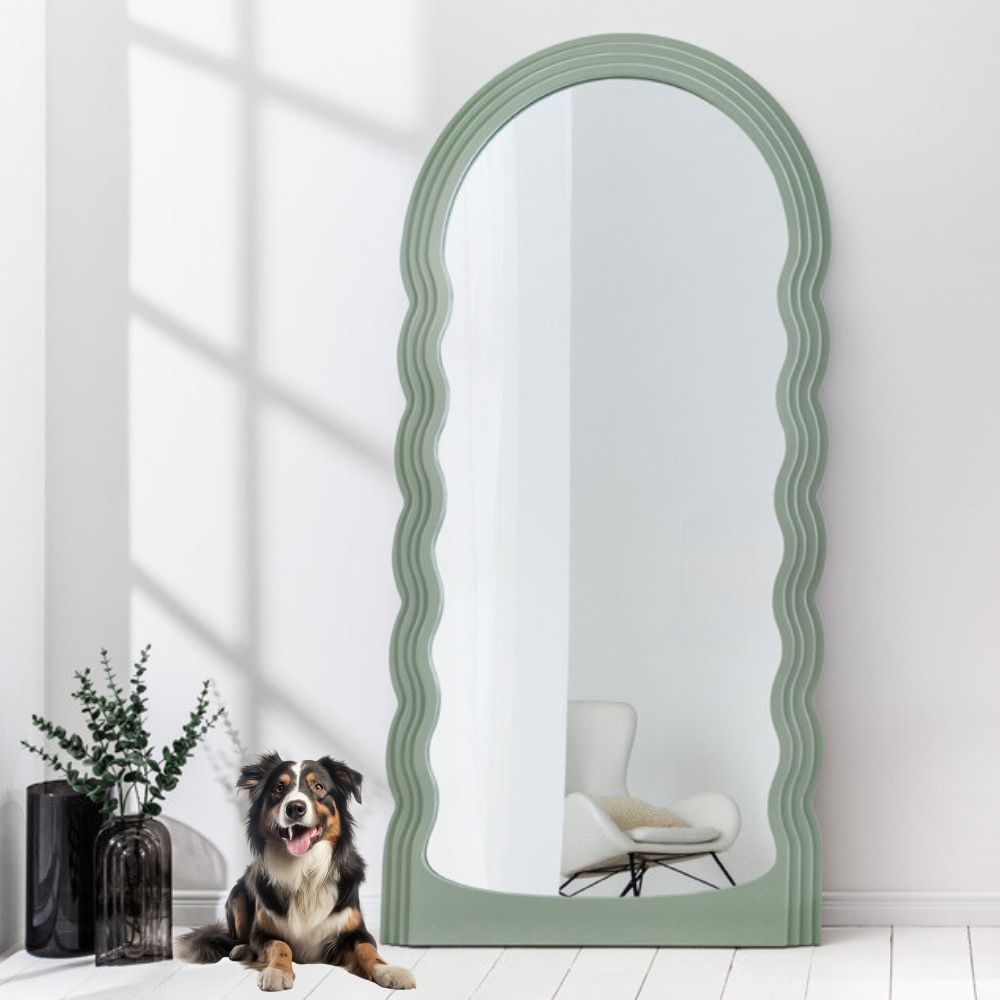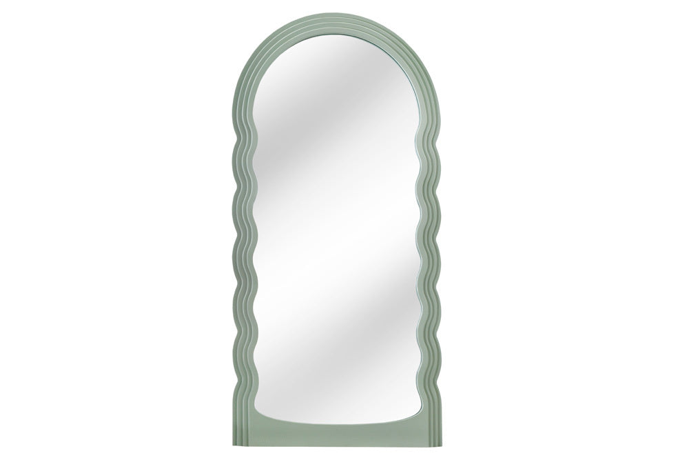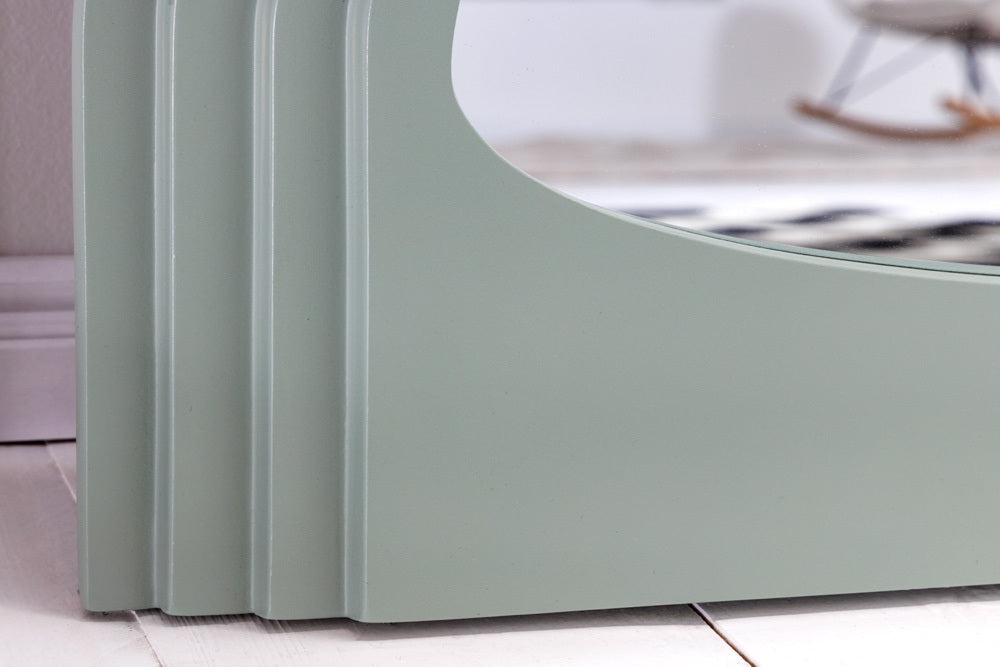 Mit dem Wandspiegel FORMOSA zieht ein echter Hingucker bei Dir ein! Der Spiegel besticht mit einem Rahmen im ganz besonderen Rundbogen-Design in hellem Pastell-Grün. Dieser Spiegel ist ein perfektes Wohnaccessoire, um jedem Raum eine zusätzliche Tiefe und Helligkeit zu verleihen. Das extravagante Design des Rahmens ist ein verspieltes Detail und die Pastell-Farbe sorgt für ein freundliches Ambiente – egal ob im Flur oder im Schlafzimmer!