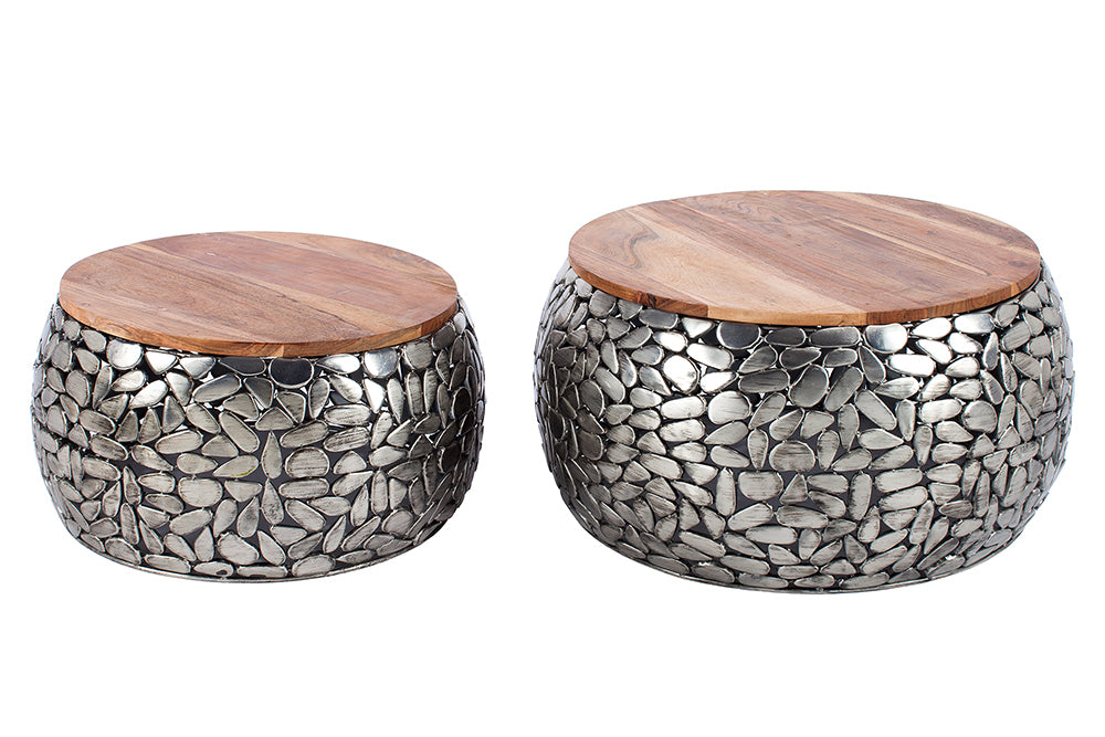 Extravagantes 2er-Set Couchtisch PIEDRA silber Aluminium Mangoholz
