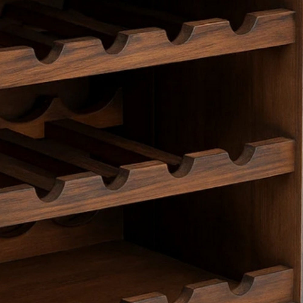 Die integrierten Ablagen bieten Platz für mehrere Weinflaschen und sorgen für eine sichere, liegende Lagerung. Die massive Konstruktion verleiht dem Regal Stabilität und Wertigkeit.
