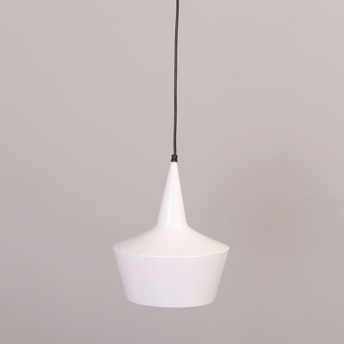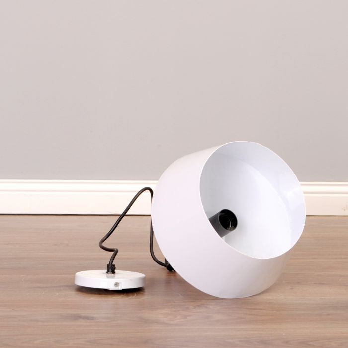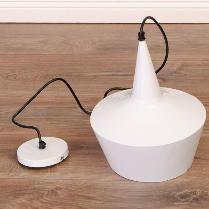 Hängeleuchte JACK in weiß. Minimalistische Leuchte im Industrie-Design. Der Lampenschirm ist aus Metall gefertigt und wurde außen und innen in weiß lackiert.