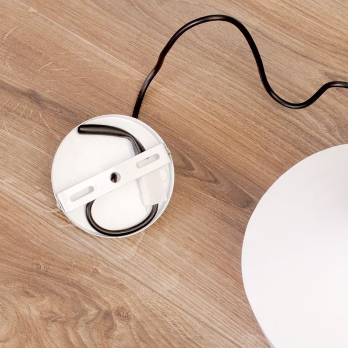 Zur Anbringung an der Decke wird die Lampe mit einem Baldachin geliefert, der in der gleichen Farbe wie die Leuchte lackiert ist. Diese Leuchte passt am besten in moderne, eher puristisch eingerichtete Räumlichkeiten.