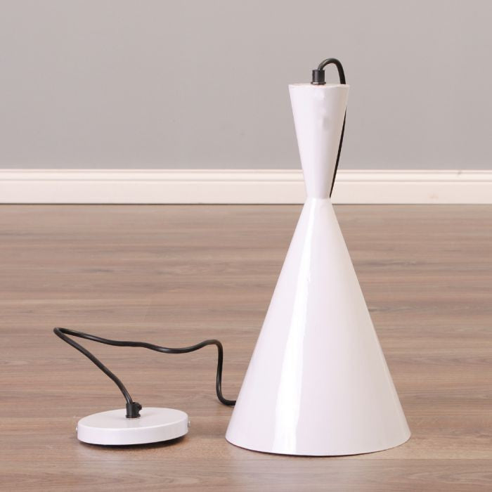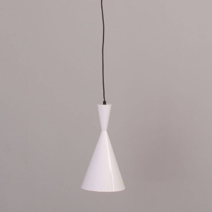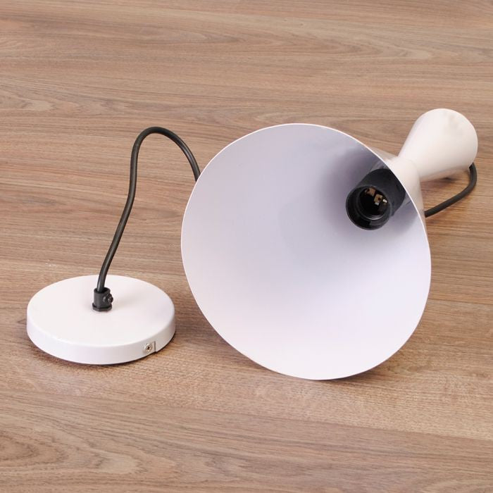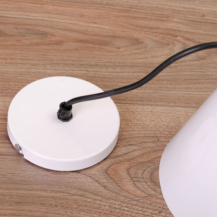 Hängeleuchte JAMIE in weiß. Minimalistische Leuchte im Industrie-Design. Der Lampenschirm ist aus Metall gefertigt und wurde außen und innen in weiß lackiert.