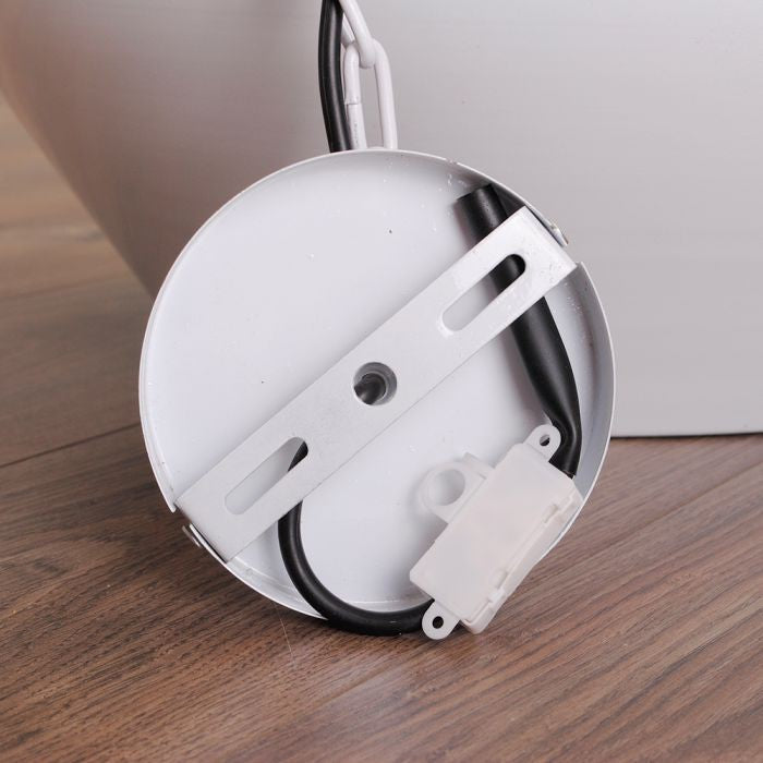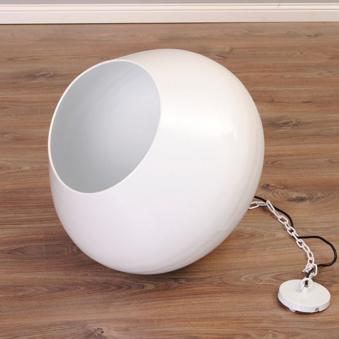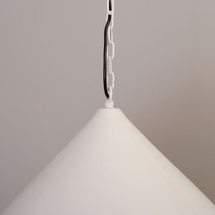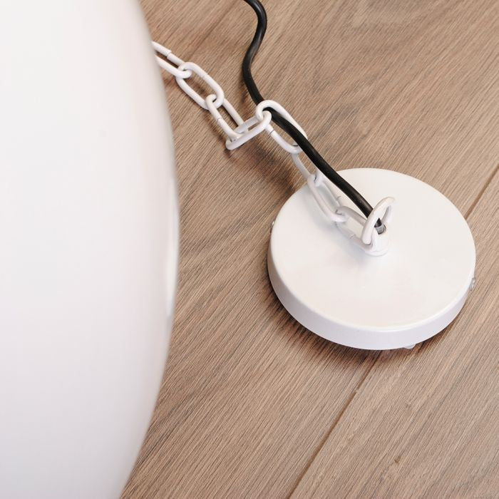 Hängeleuchte JOHN in weiß. Minimalistische Leuchte im "Industrie"-Design. Der Lampenschirm ist aus Metall gefertigt und wurde außen und innen in weiß lackiert.