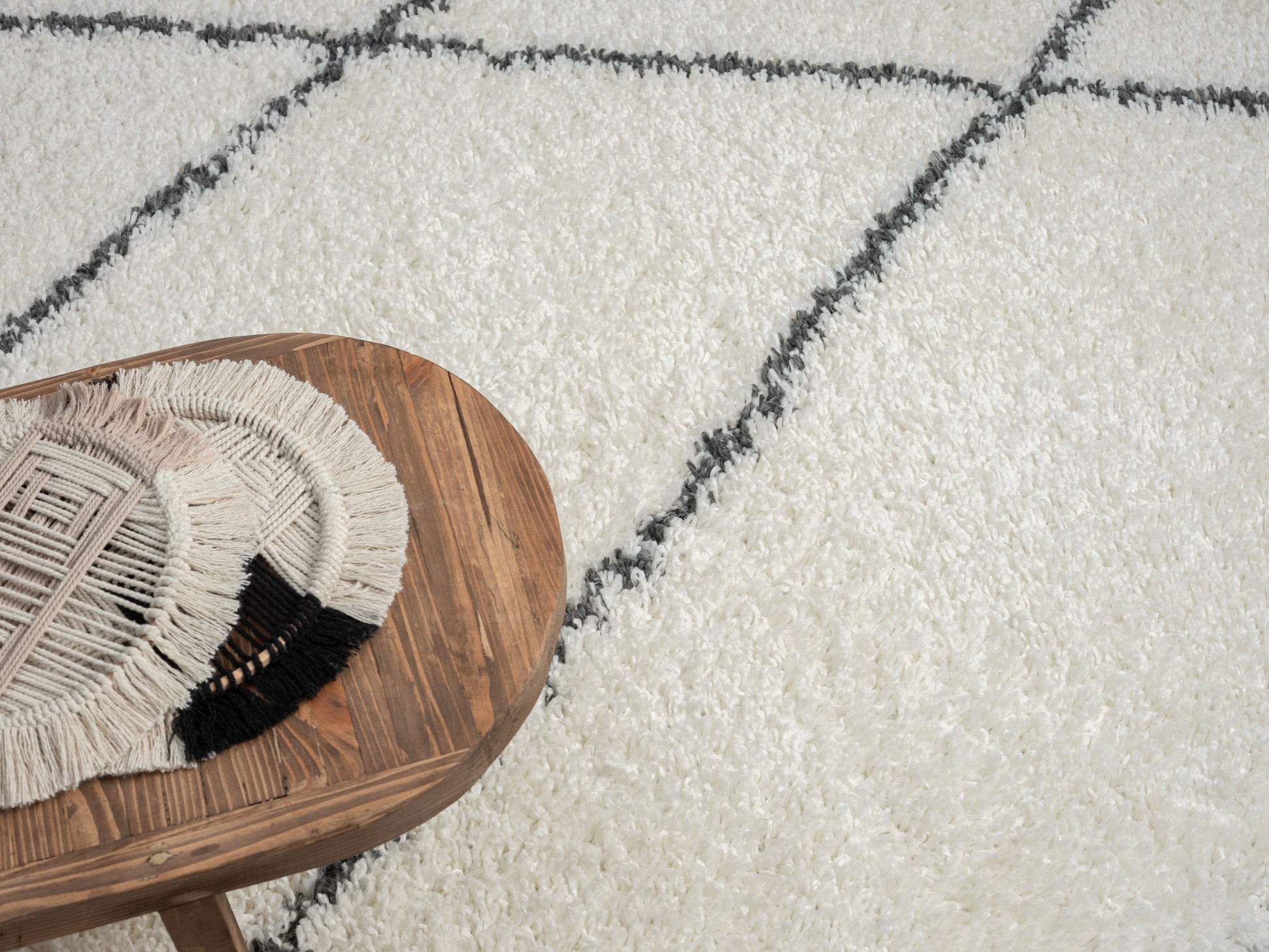 Hochflor Teppich SHAGGY-Raute creme rechteckig diverse Größen