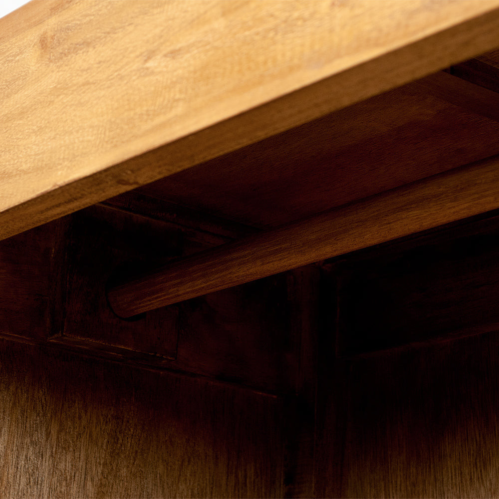Jeder Baum ist unterschiedlich in Farbe, Maserung und Form. Unser Massivholz ist ein natürlicher Rohstoff und weist dementsprechend je nach Holzart individuelle, charakteristische Holzeigenschaften auf. Da Massivholz ein organisches Material ist, besitzt auch jedes Möbelstück aus Holz einen natürlichen, unverwechselbaren Charakter und hat natürliche Gebrauchsspuren, die bei der Verarbeitung in die Oberflächen integriert werden. So werden Unregelmäßigkeiten und minimale Maßabweichungen zu individuellen Gestaltungsmerkmalen, der überwiegend von Hand gefertigten Holzmöbel. Bei natürlichem Massivholzmaterial kann es deshalb auch zu Farbunterschieden kommen. Maserung und Astbildung gehören zum charakteristischen Erscheinungsbild von Massivholz. Eine, für Holz typische Eigenschaft, ist die Volumenveränderung durch Feuchtigkeitsaufnahme bzw. Trocknung. Je nach Feuchte des Materials kann Holz unterschiedlich stark arbeiten. Wir empfehlen regelmäßige Pflege für eine möglichst lange Freude mit Ihren Massivholz-Artikeln.