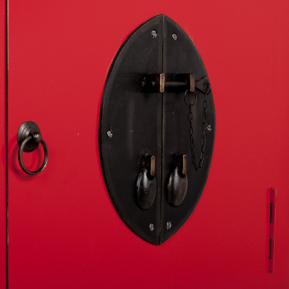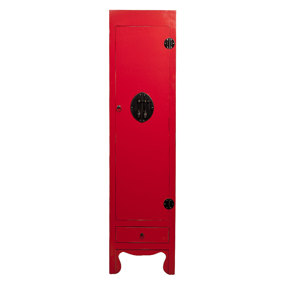 Der edle Hochzeitsschrank ASIA-SLIM bietet Ihnen exklusives Design in Vollendung. Jeder dieser Schränke im traditionell asiatischen Stil wird in Handarbeit gearbeitet und damit zum echten Unikat. Hinter der Tür und der Schublade verbirgt sich viel Stauraum für ihre Mode und Accessoires. Der Innenraum ist in zwei Ablageflächen unterteilt. An der abnehmbaren Kleiderstange kann man Kleidungsstücke aufhängen. Dieser Schrank ist ein garantierter Blickfang und wird Ihr Ambiente in stilvoller Weise aufwerten. Der dekorative Verschluss mit Riegel an der Vorderseite wertet das Gesamtbild auf.