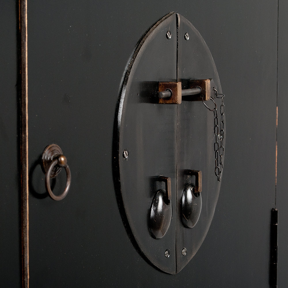 Hochzeitsschrank ASIA-SLIM Shabby-Schwarz ca. H200cm Mahagoni