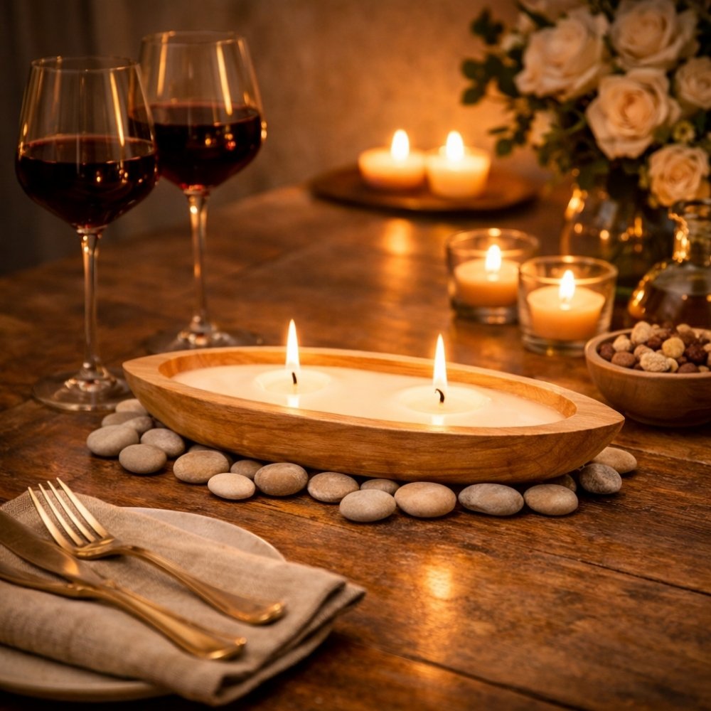 Mit ihren großzügigen Maßen von 40 x 5,5 x 14 cm (B x H x T) wirkt die Kerzenschale präsent, aber elegant. Sie eignet sich ideal als dekorativer Mittelpunkt auf langen Flächen wie Esstischen, Konsolen oder Badezimmerablagen. Besonders schön: kombiniert mit Naturstein, Leinen, Keramik oder warmen Holztönen.
