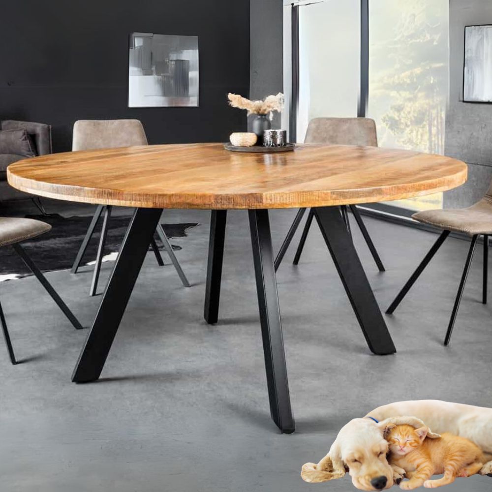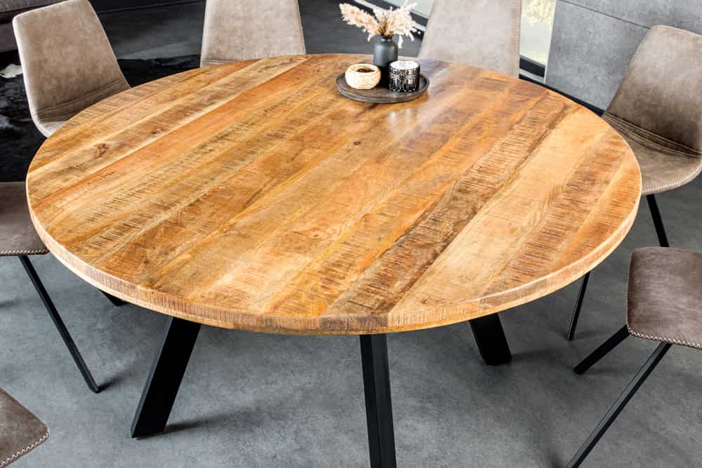Industrie-Look Esstisch ARTE 145cm rund Mangoholz natural