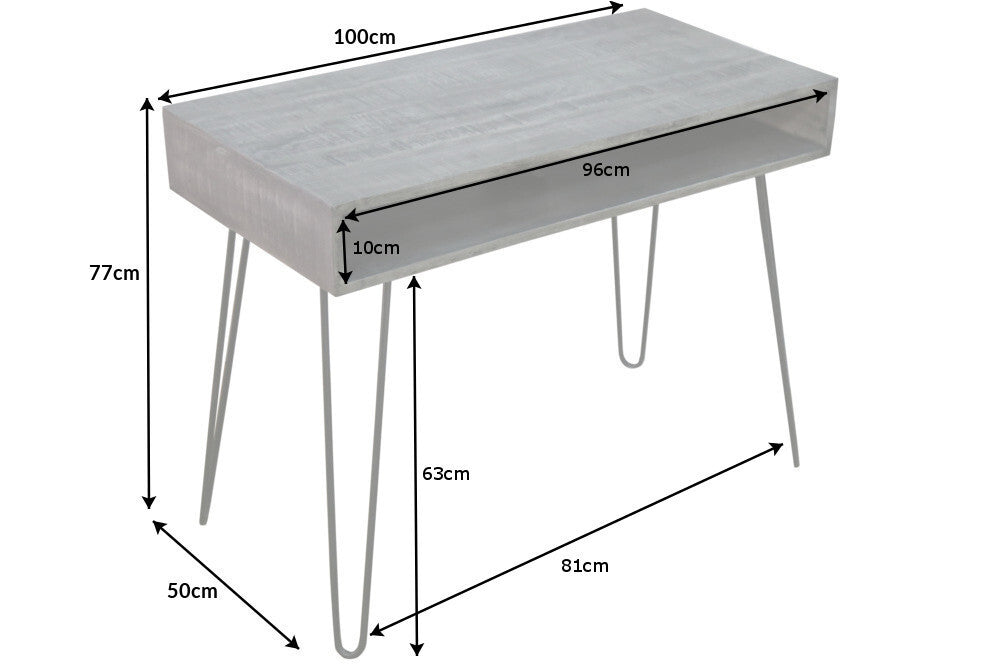 Industrie-Look Schreibtisch ALINA 100cm grau Mangoholz Metallbeine