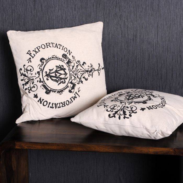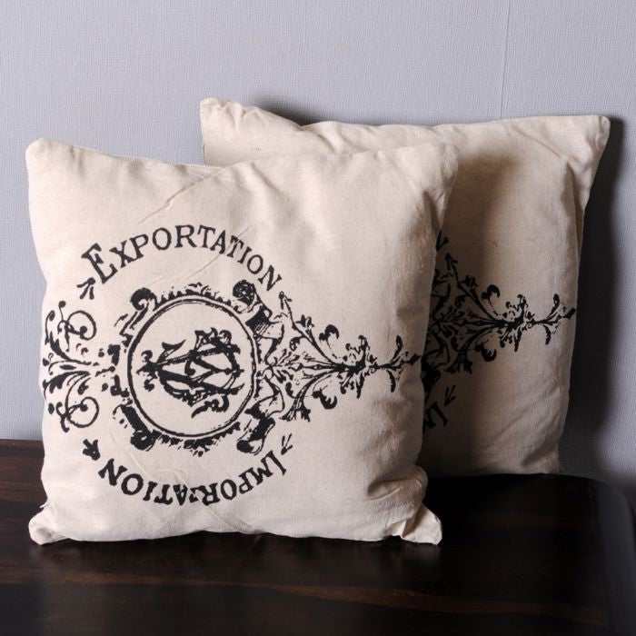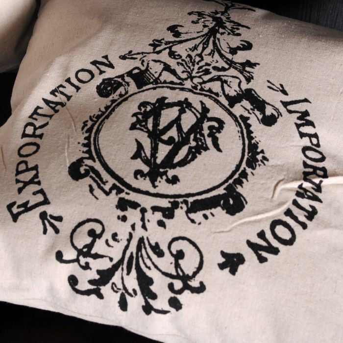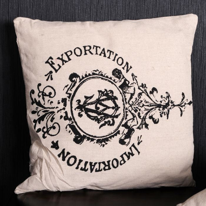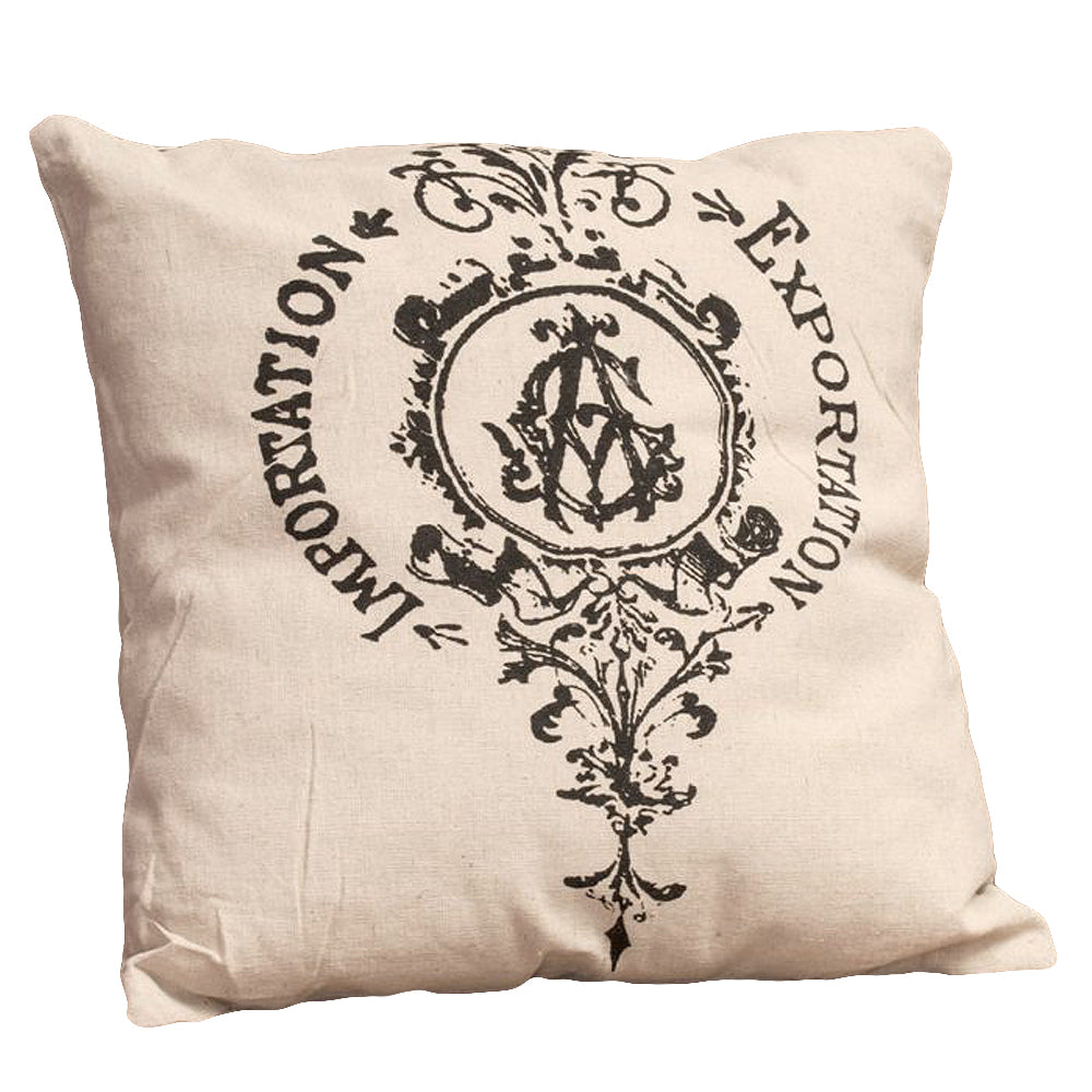 Kissen EXP/IMP aus Leinen mit Ornament 40x40cm