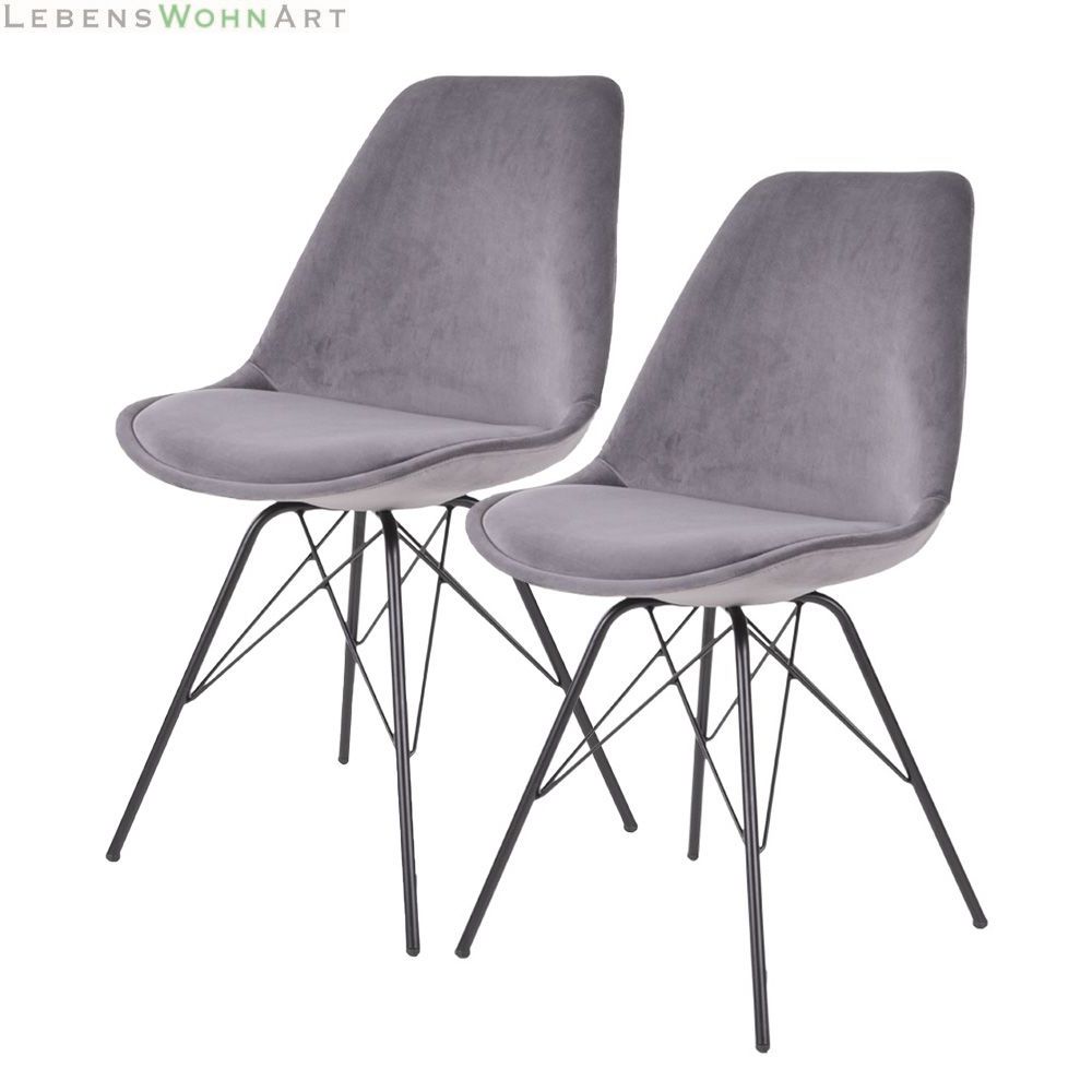 Klassiker Stuhl SCANDINAVIA (2er Set) in grau Samt - schwarze Beinen