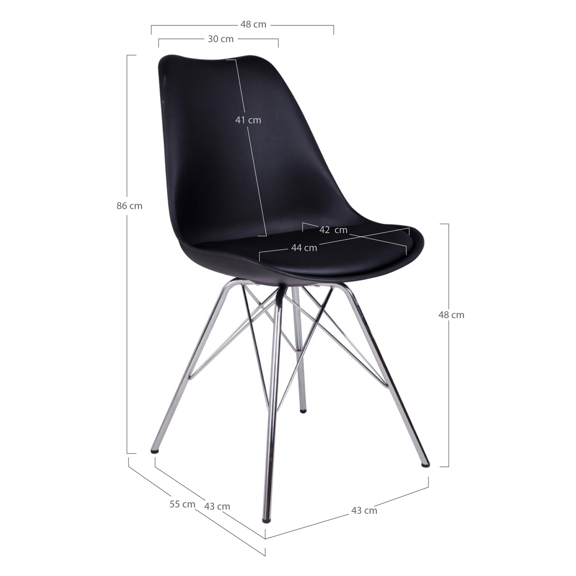 Sitztiefe: 42 cm / Sitzhöhe: 48cm / max.Belastbarkeit: 120 kg