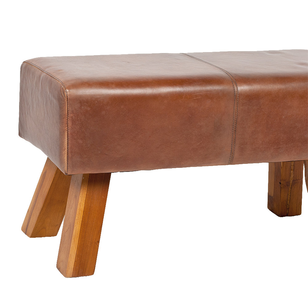 Leder Bank MAXI-M im Design eines Turnbock's. Das Gestell wurde aus Massivholz (Teak) gefertigt, die Bank ist mit Echtleder (Ziege) bezogen. Diese formschöne Bank ist für jeden Wohnbereich ein absolutes Highlight.