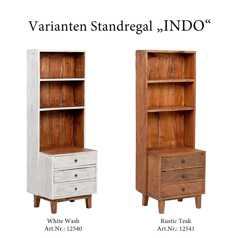 Standregal INDO in der Farbe Rustic Teak. Ein echtes Design-Highlight im Vintage-Stil für Ihren Wohnbereich, ganz gleich ob im Wohnzimmer, Esszimmer oder in einer anderen Räumlichkeit. Ideal als Bücherregal, als Badregal oder für ihr Geschirr und sonstige Utensilien geeignet. Dieser Artikel wurde in Handarbeit gefertigt, ist somit ein Unikat und hat seinen eigenen, individuellen, unvergleichlichen Charakter. Dieses tolle Möbelstück wurde aus Mahagoni gefertigt.