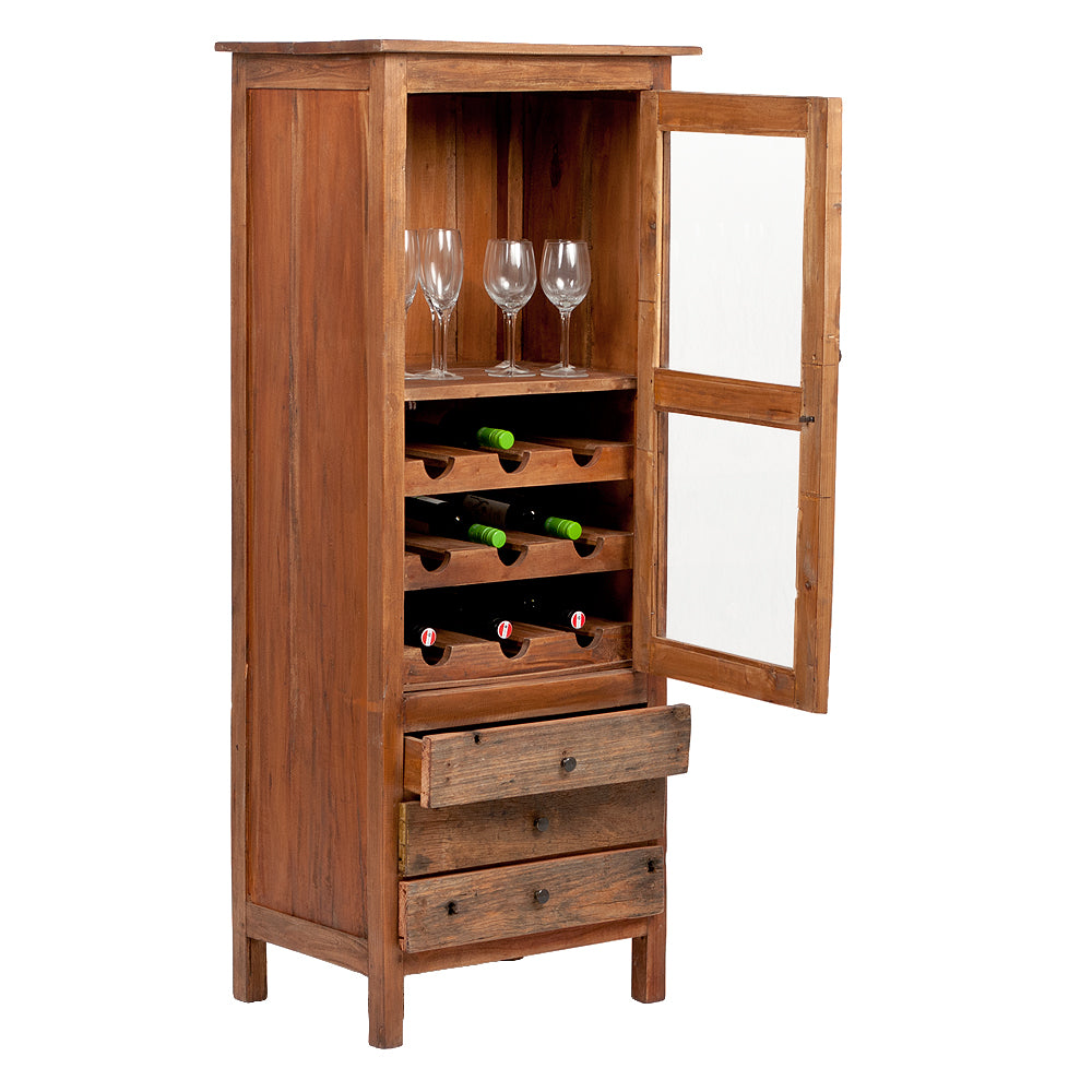 Mahagoni Weinschrank CABINET H154cm Rustic Teak Vitrine