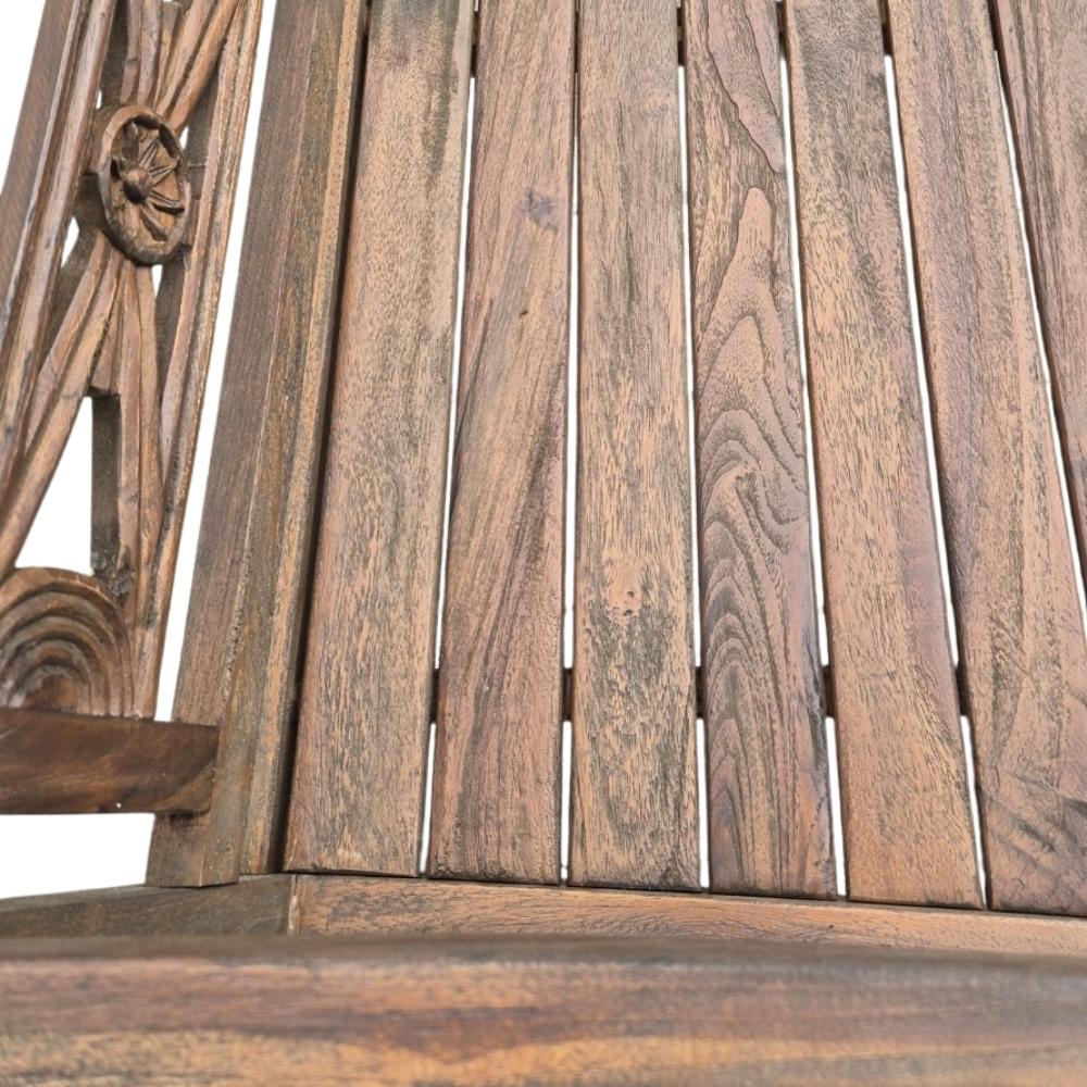 Das Holz dieser Sitzbank wird bei der Produktiont sorgfältig mit feinem Schleifpapier bearbeitet und anschließend chemisch behandelt, um eine gleichmäßige Farbgebung zu erzielen. Mit der Zeit bildet sich auf dem Teakholz die charakteristische silbergraue Patina, die diesem Material seinen besonderen Charme verleiht. Wenn Du den ursprünglichen Farbton wieder hervorheben möchtest, kannst Du die Patina einfach abschleifen – und schon sieht Deine Outdoor-Bank wieder wie neu aus!