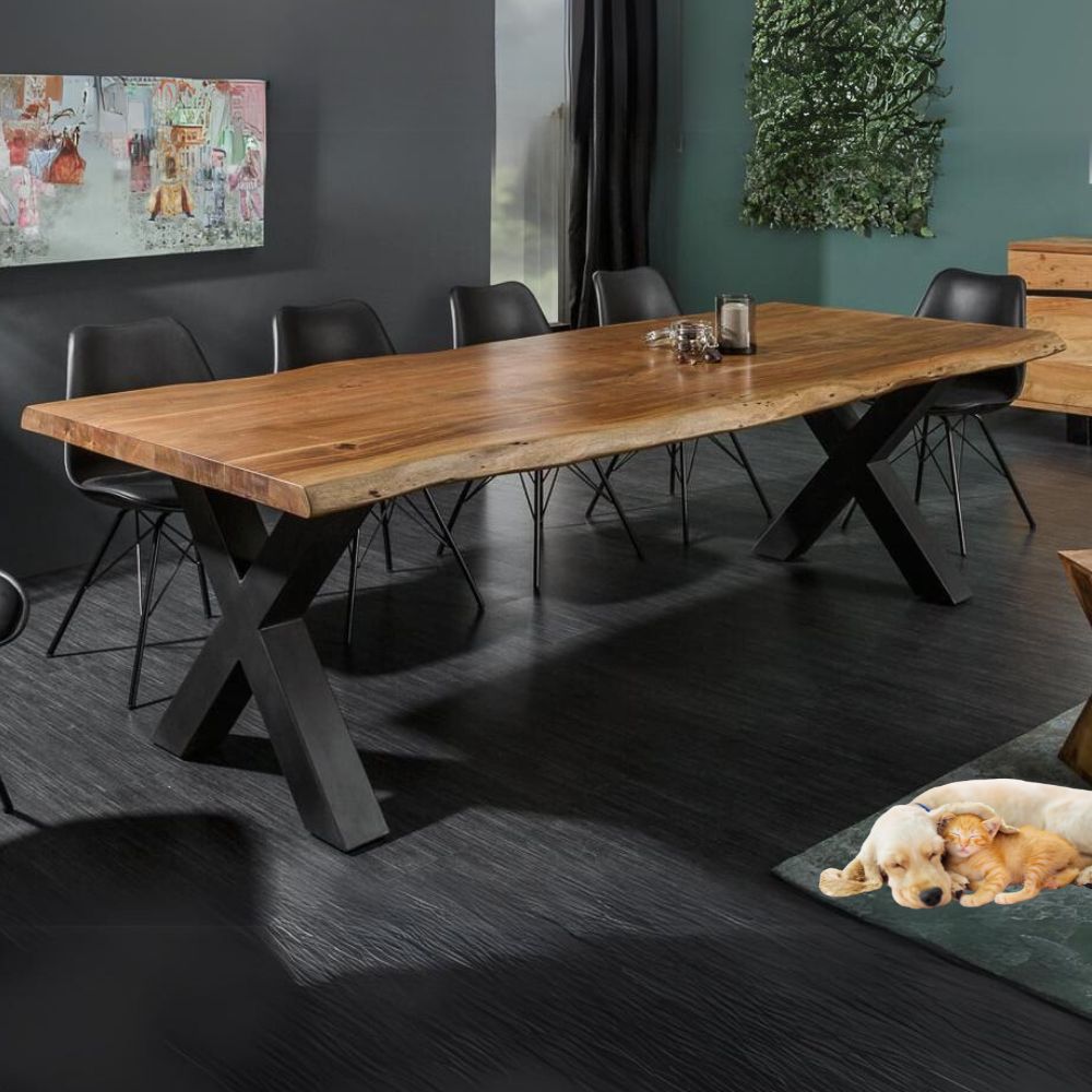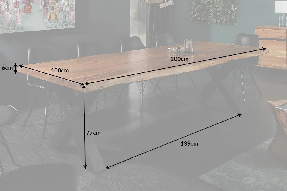 Massiver Esstisch FORTE 200cm Akazie 6cm Baumkante X-Gestell