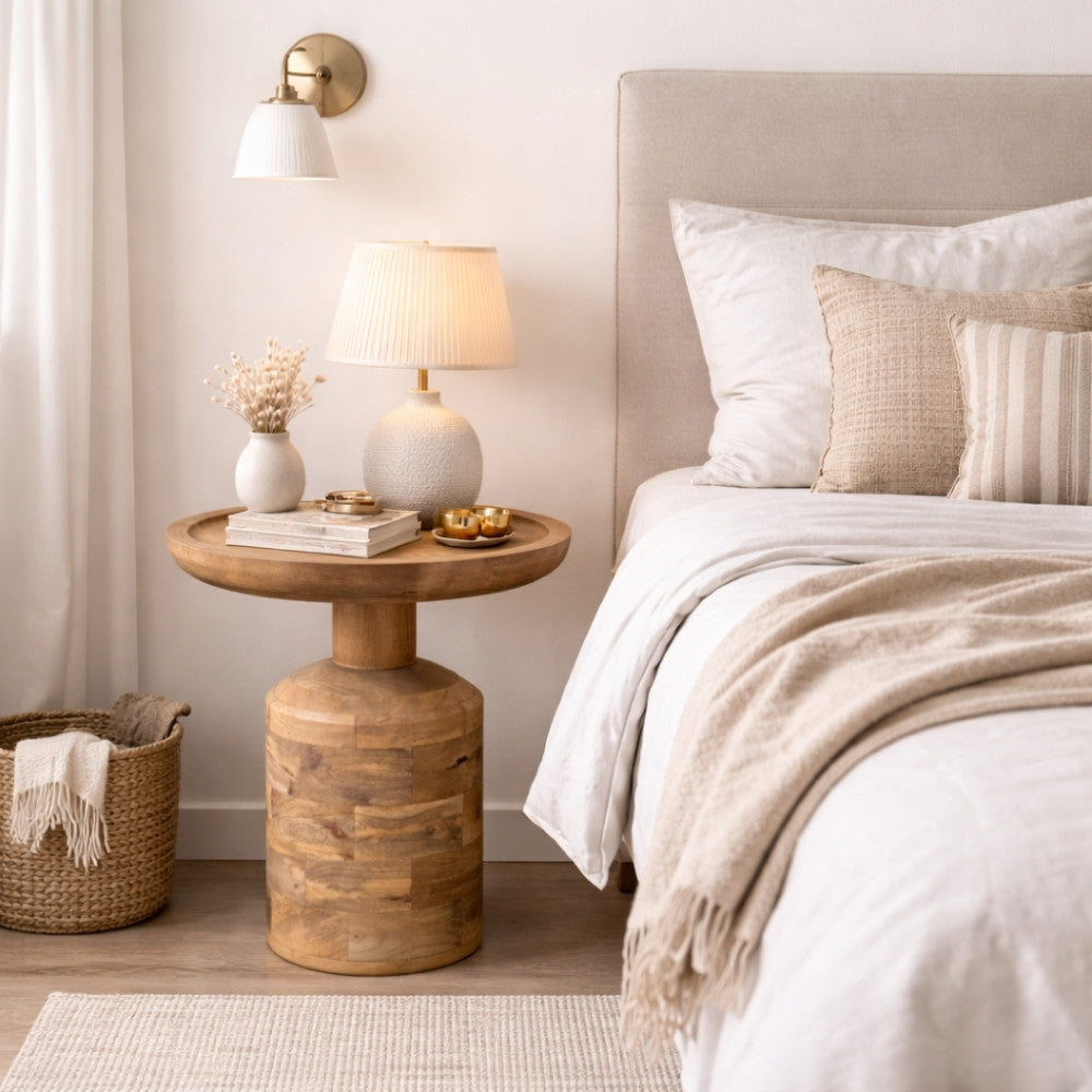 Massivholz Beistelltisch KITAR-E 45cm Mangoholz natural Handmade