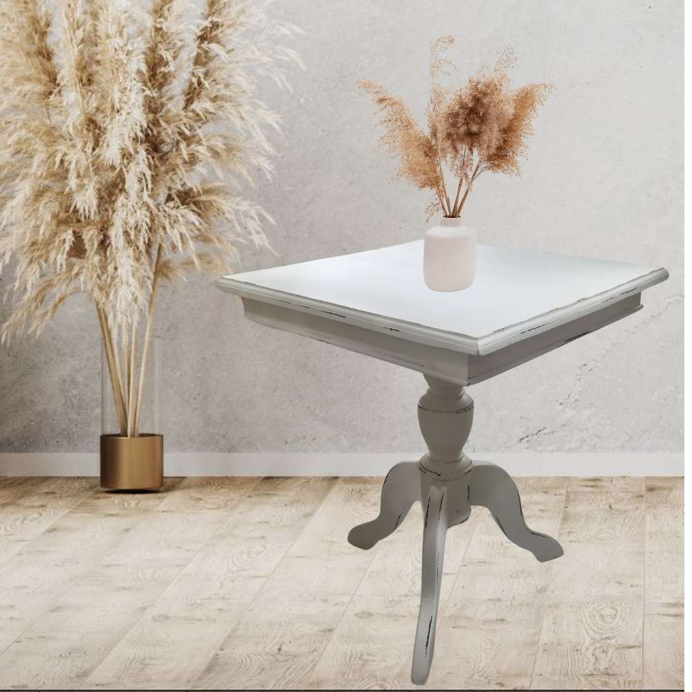 Massivholz Landhaus Beistelltisch TIGA 60cm antik-weiss Shabby Chic