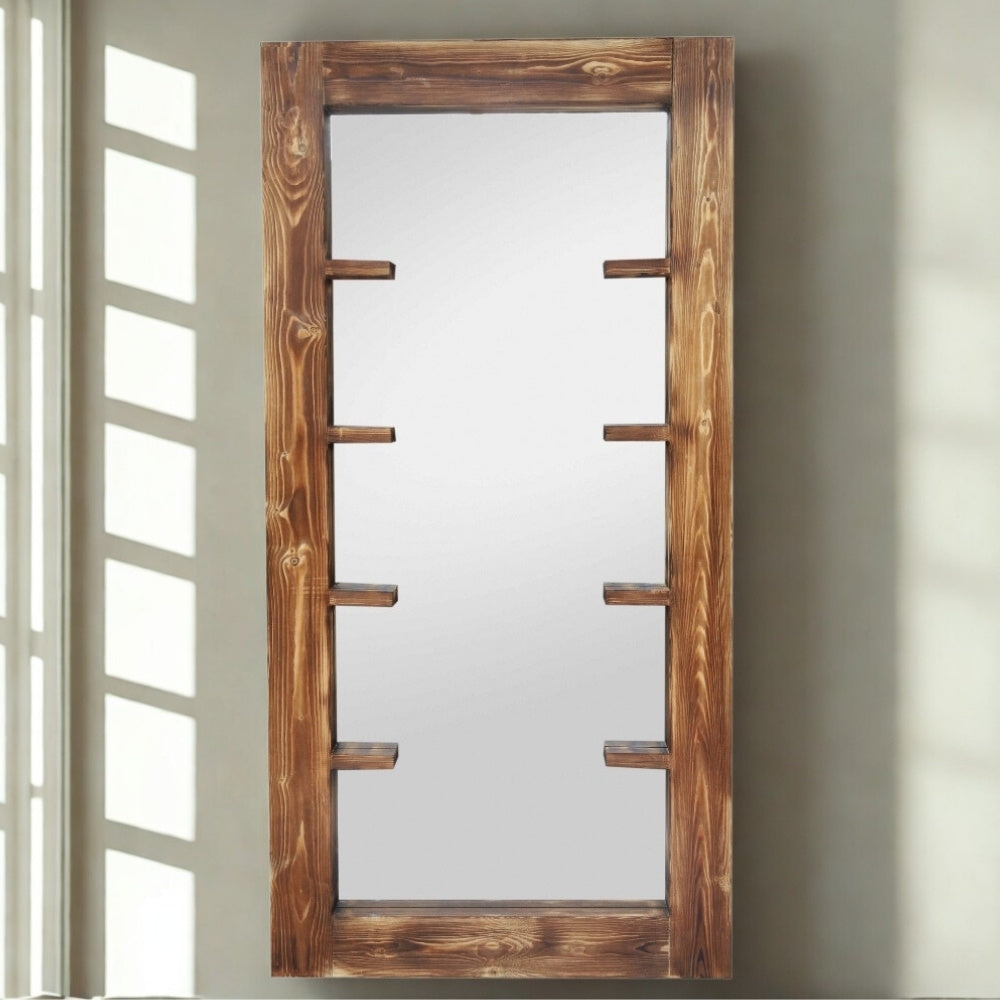 Massivholz-Spiegel HARMONY mit Ablagen – Design aus recyceltem Pinienholz