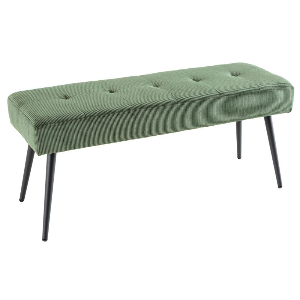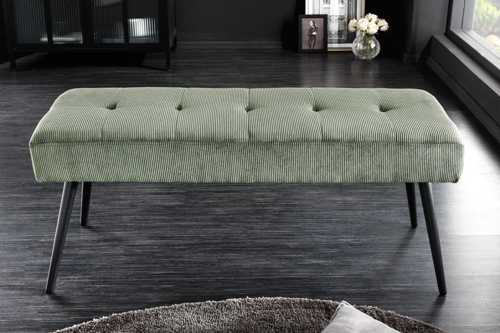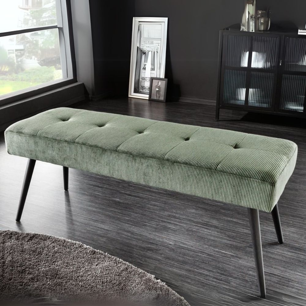 - Stilvolles Design: Die Sitzbank BELLE besticht durch ihren grünen Cord-Bezug, der ein luxuriöses und einladendes Ambiente schafft.