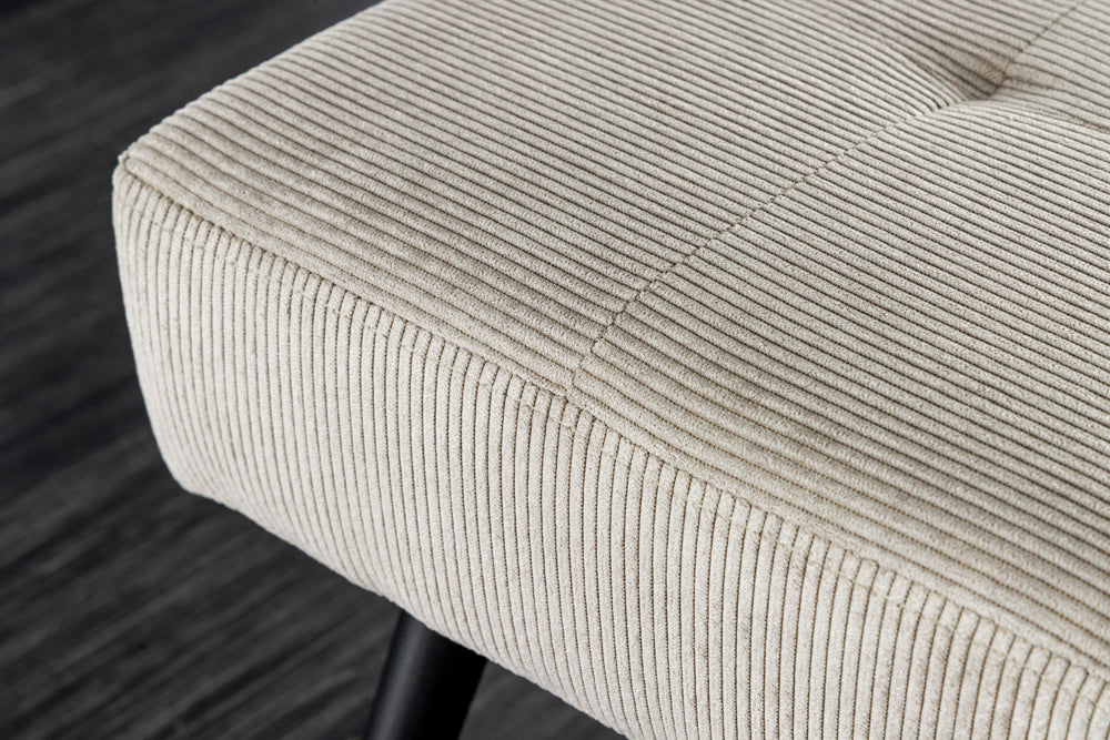 - Hochwertige Verarbeitung: Der Bezug aus pflegeleichtem Cord sorgt für ein angenehmes Sitzgefühl, während die stabilen schwarzen Metallbeine für Stabilität und Langlebigkeit sorgen.