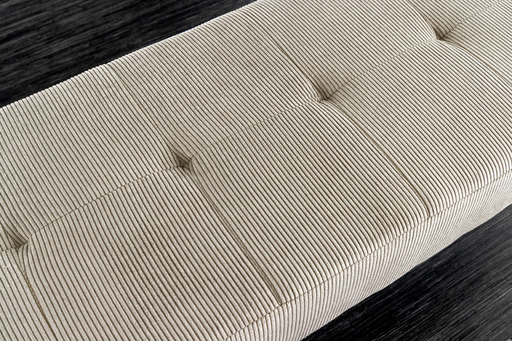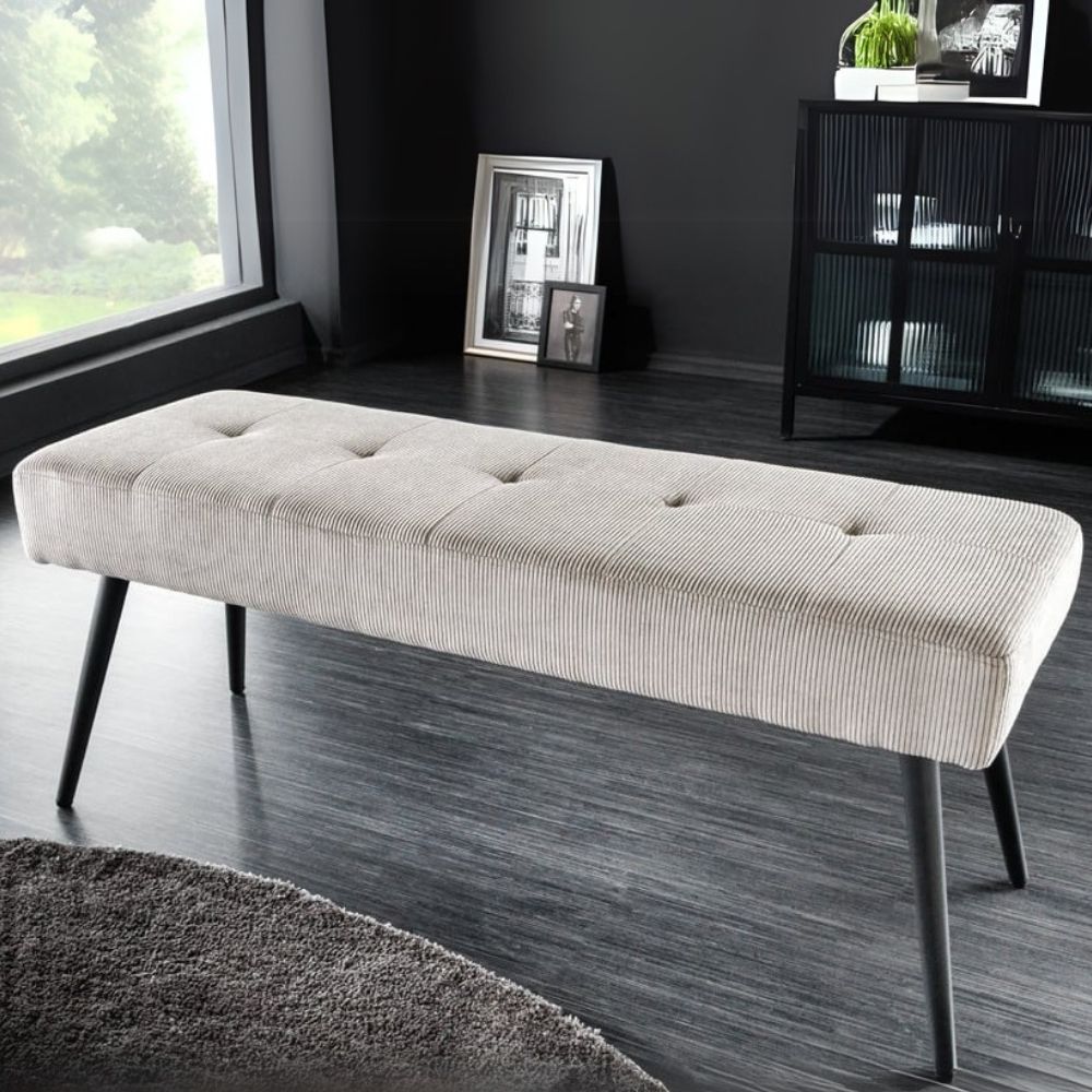 - Stilvolles Design: Die Sitzbank BELLE besticht durch ihren hell-grauen Cord-Bezug, der ein luxuriöses und einladendes Ambiente schafft.