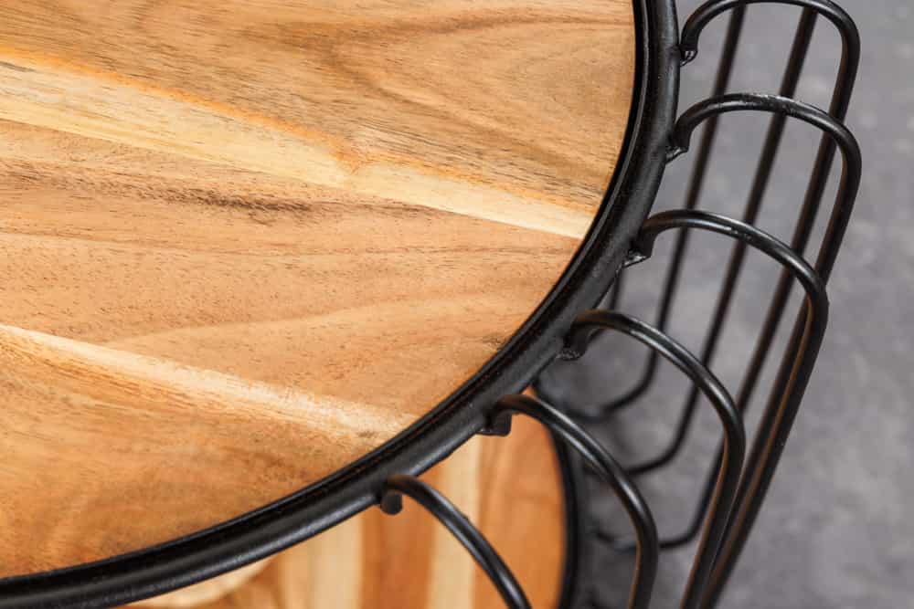 Dieser Beistelltisch ist aus massivem Akazienholz gefertigt, jedes Stück ein Unikat mit seiner eigenen Maserung und Farbe. Das robuste Holz in Kombination mit dem Industrial-Design macht diesen Tisch zu einem echten Blickfang in Deinem Wohnzimmer, Schlafzimmer oder auch Flur. Stell Dir vor, wie er zum kleinen Hingucker in Deinen vier Wänden wird!