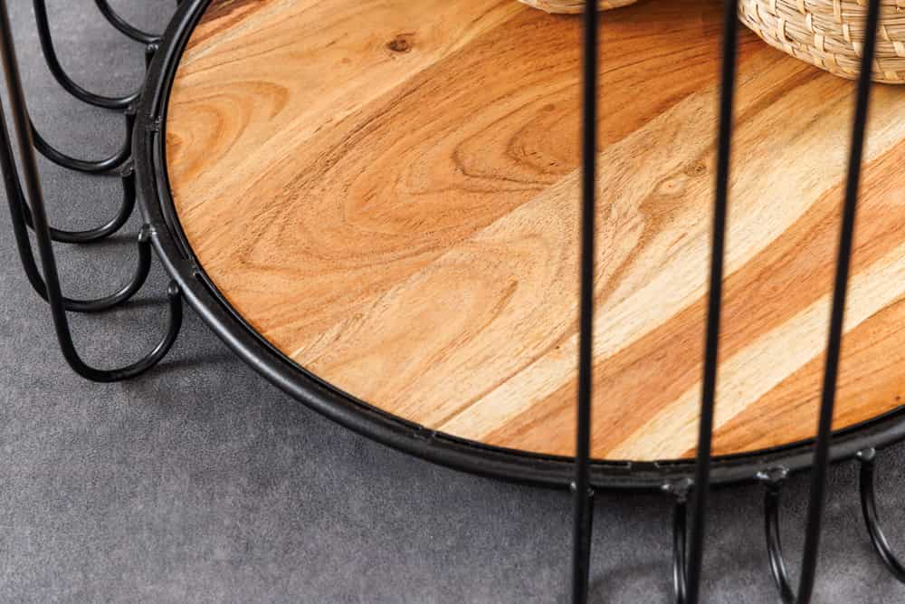 - Material: Akakzienholz + pulverbeschichtetes Eisen