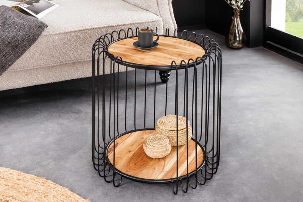 Moderner Beistelltisch PRAWDA 50cm Akazie natur Eisengestell