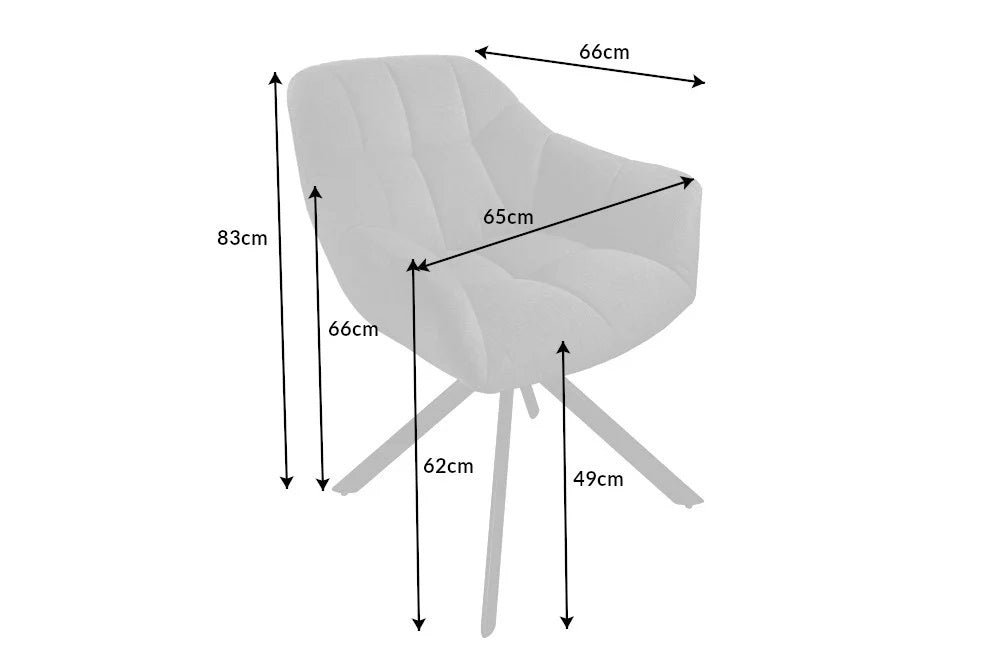 - Maße ca.: 65x83x66cm (BxHxT) - Sitzbreite 43cm - Sitzhöhe 49cm - Sitztiefe 43cm - Höhe Rückenlehne 41cm - Höhe Armlehne 18cm - Abstand zwischen Boden und Armlehne 62cm (vorne) 66cm (hinten)