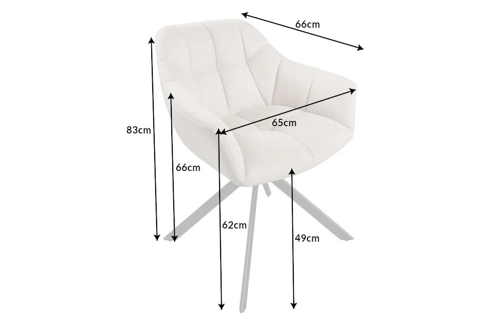 - Maße ca.: 65x83x66cm (BxHxT) - Sitzbreite 43cm - Sitzhöhe 49cm - Sitztiefe 43cm - Höhe Rückenlehne 41cm - Höhe Armlehne 18cm - Abstand zwischen Boden und Armlehne 62cm (vorne) 66cm (hinten)