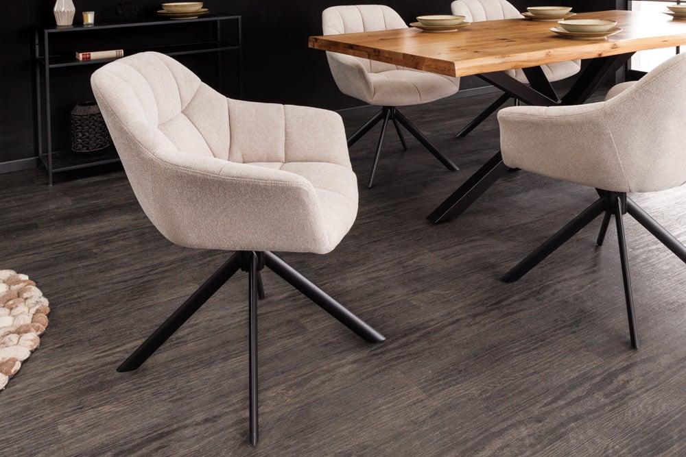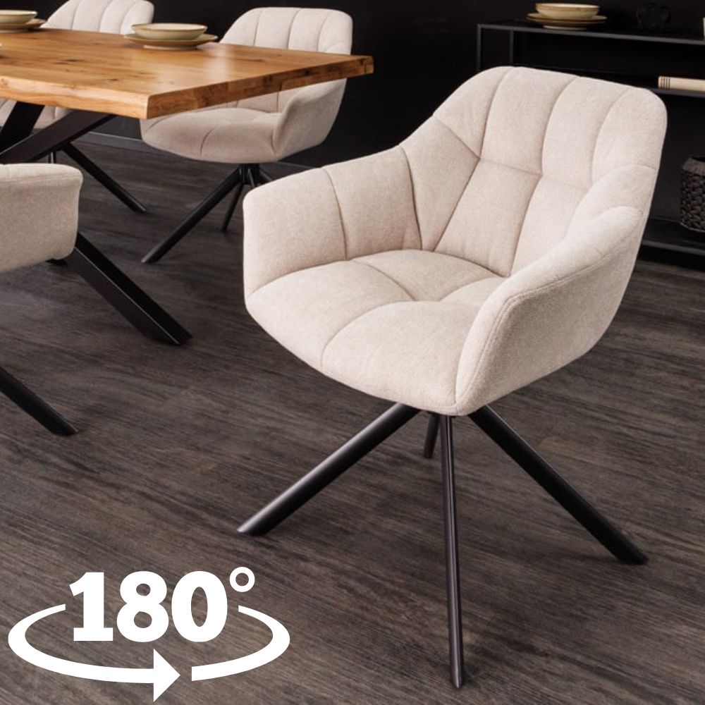 Moderner Drehstuhl LYON beige Strukturstoff Metallgestell