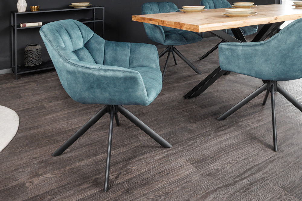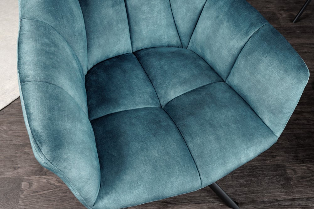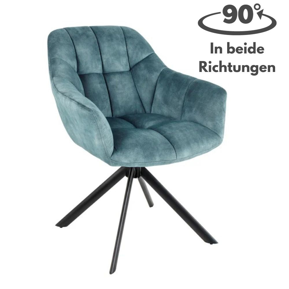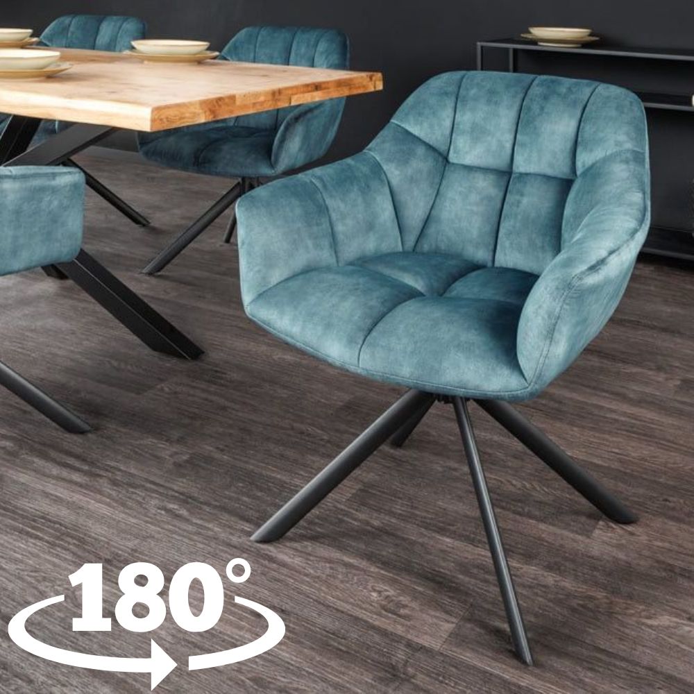 Moderner Drehstuhl LYON blau Samt Metallgestell