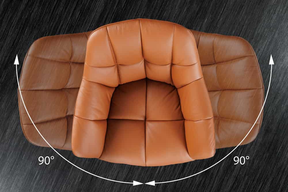 Dank der cleveren 180°-Drehfunktion mit Auto-Return-Funktion bist Du immer in Bewegung und kannst Dich mühelos allen Gesprächspartnern zuwenden. Die komfortablen Armlehnen bieten zusätzlichen Halt und unterstützen eine entspannte Körperhaltung.Robuste Eleganz für Deinen Alltag
