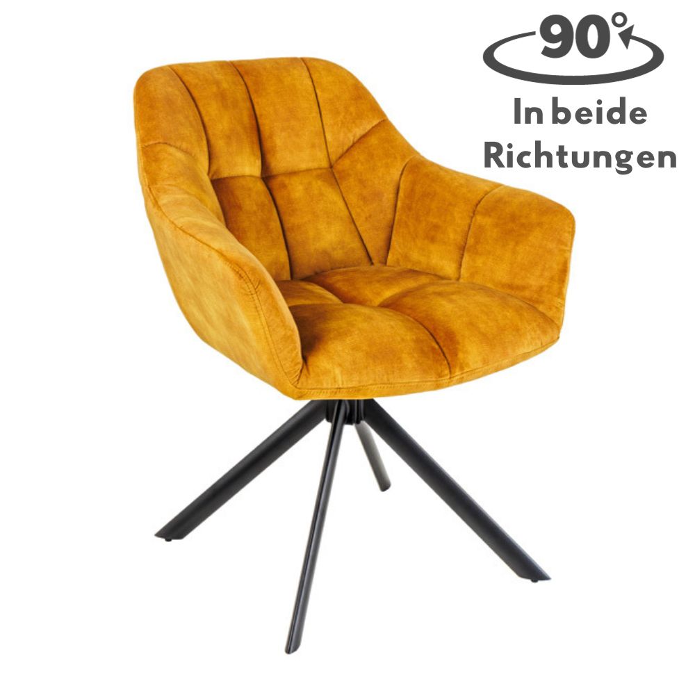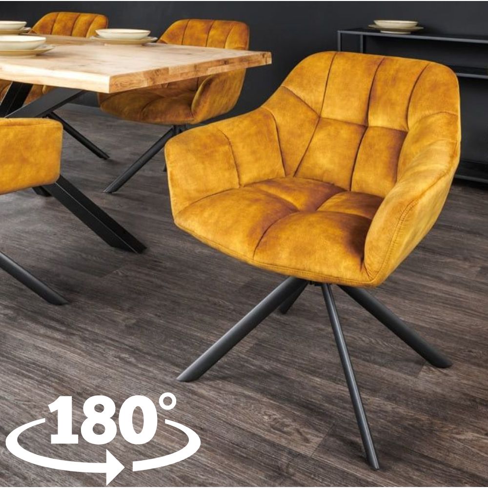 Moderner Drehstuhl LYON senfgelb Samt Metallgestell