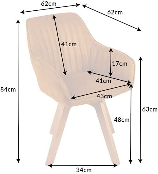 - Maße ca.: 62x83x62cm (BxHxT) - Sitzbreite 43cm - Sitzhöhe 48cm - Sitztiefe 41cm - Höhe Rückenlehne 41cm - Höhe Armlehne 17cm - Abstand Boden/Armlehne 63cm