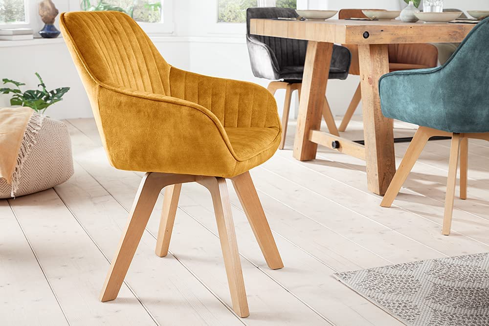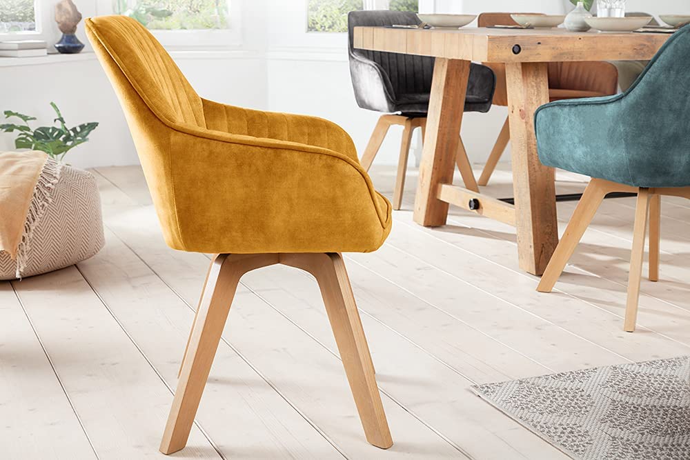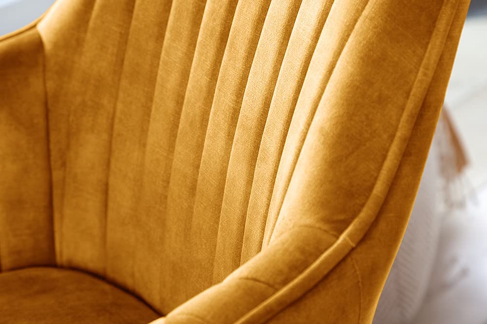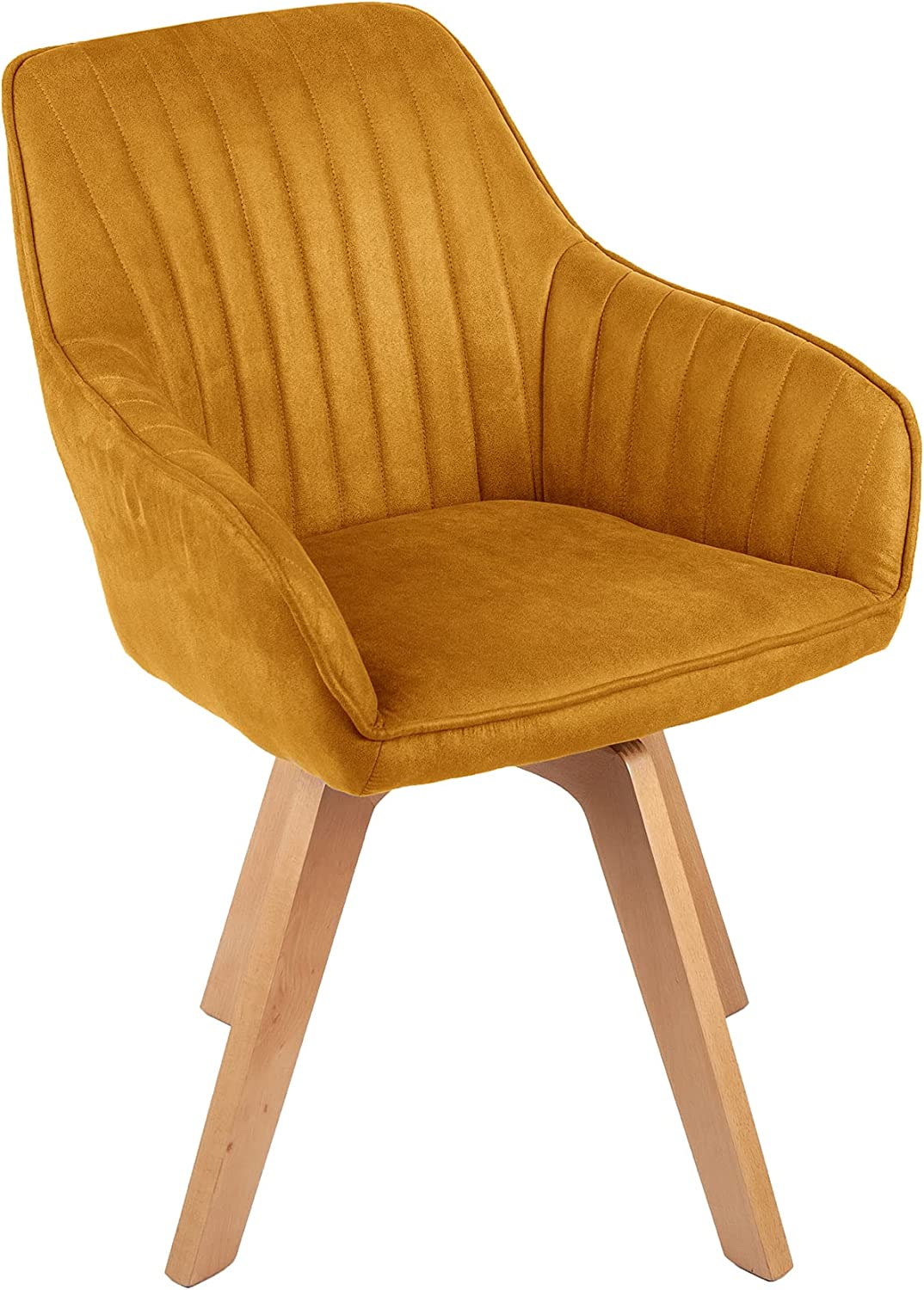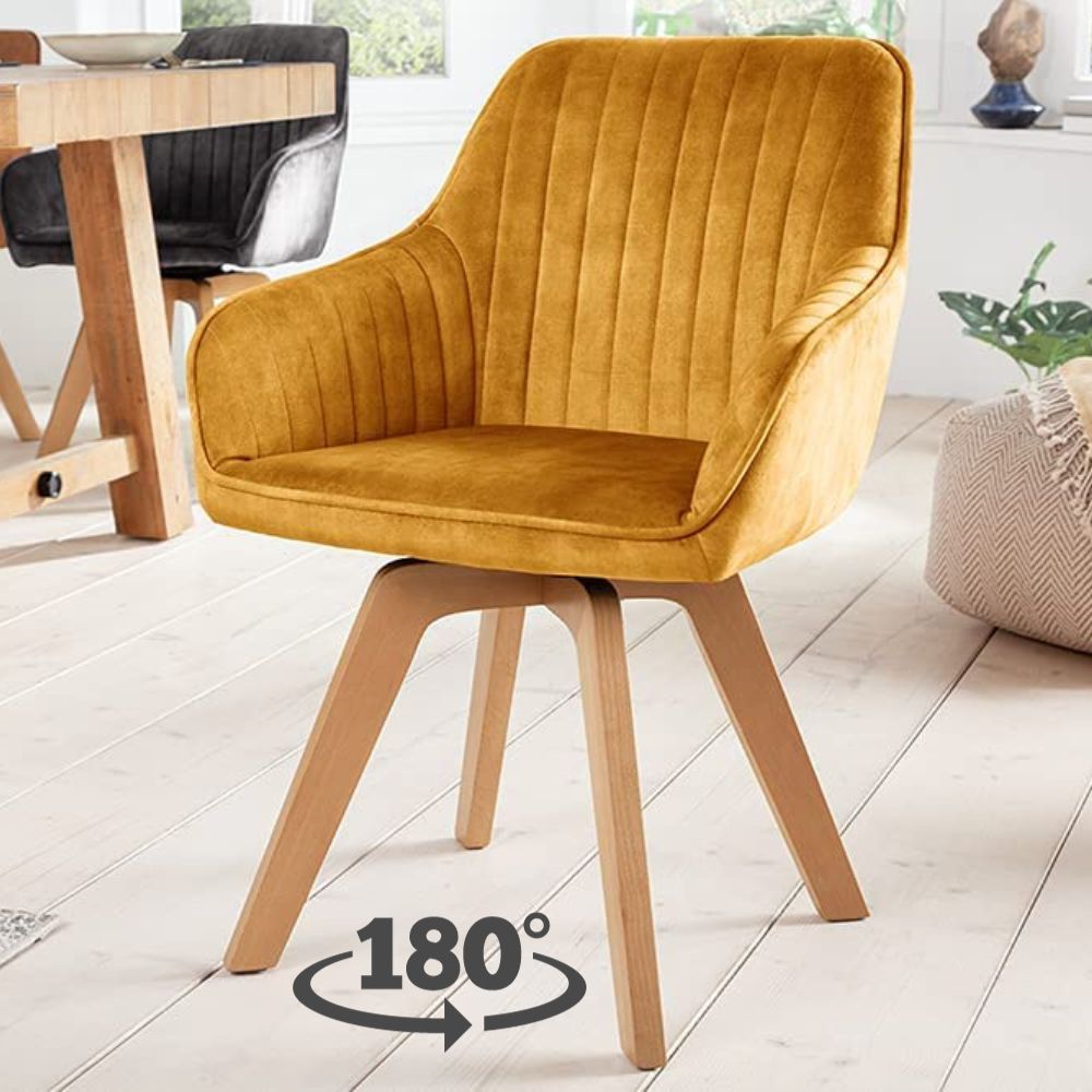 Moderner Drehstuhl NOVO Samt ocker-gelb Buchenholz Armlehnen